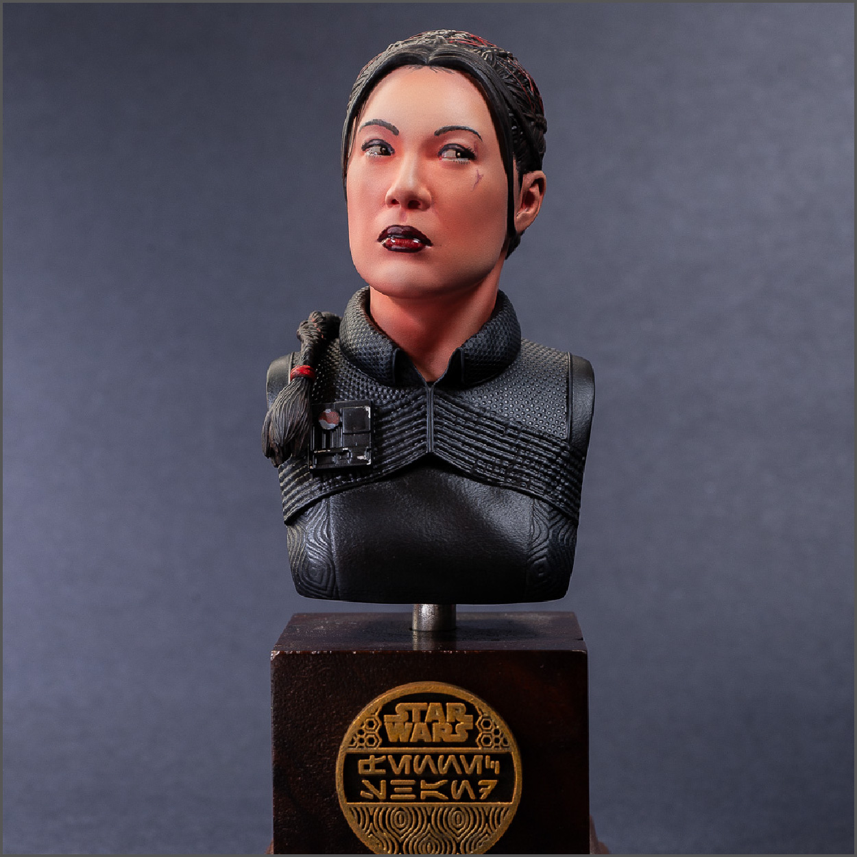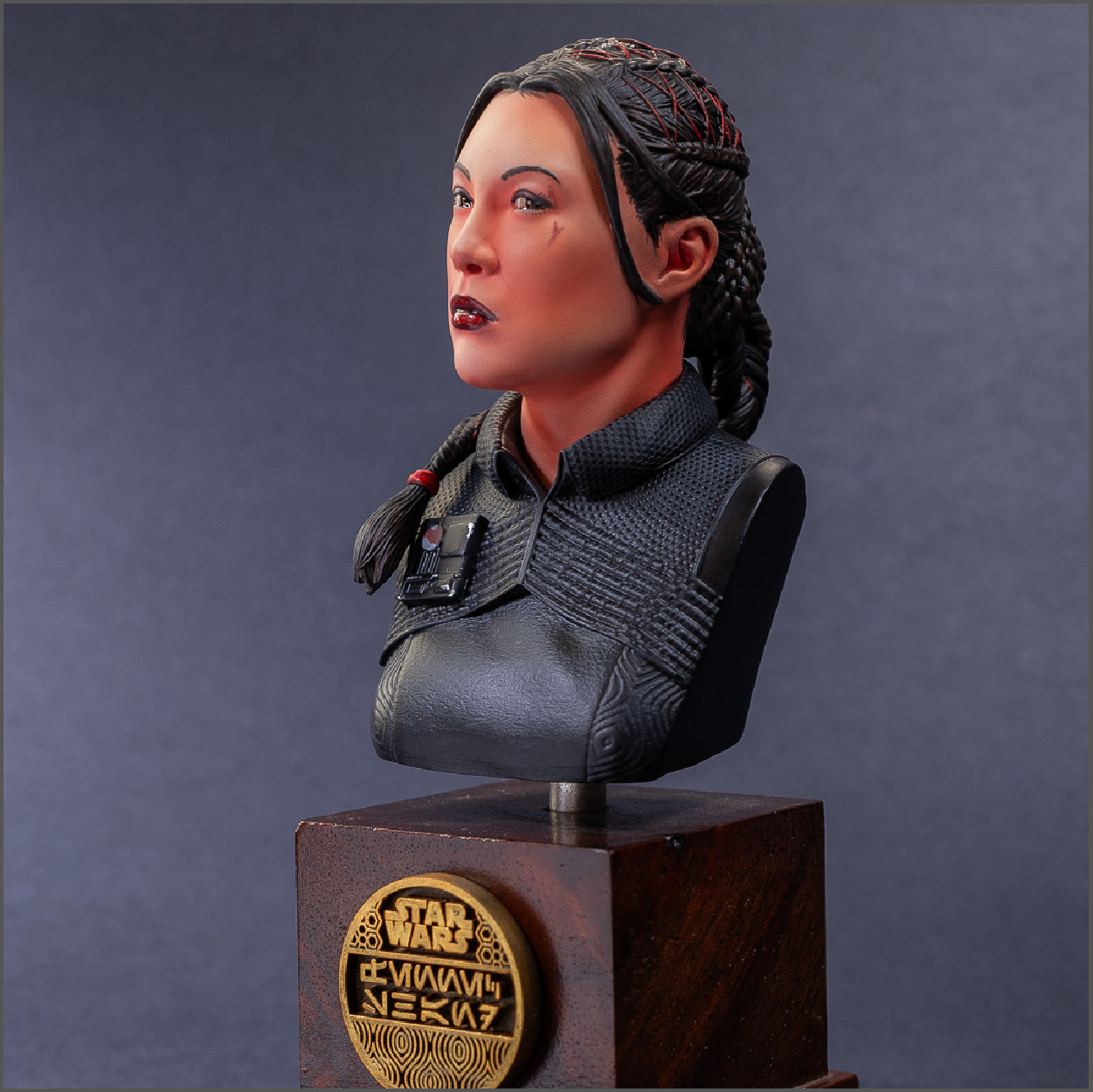 3d print by me. Sculpt is from 'sidnaique' on cults3d. Perfect likeness of Ming Na-Wen IMO. About an even mix of airbrush and handbrushing.