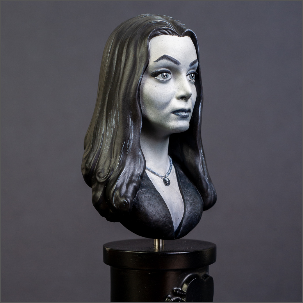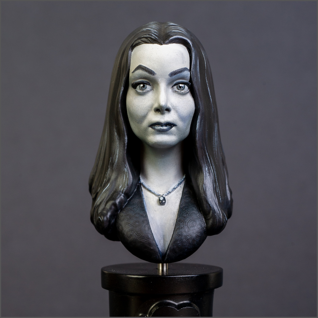 I grew up watching The Addams Family with my dad, so I have fond memories of the show. A while back, I happened to see this resin bust at one of the vendors at a contest I was attending. It was fairly priced so I picked it up. I decided to try painting it in monochrome since the show was black and white. It'd be the first time i'd ever done a monochrome paintjob on a model. I think it turned out well.