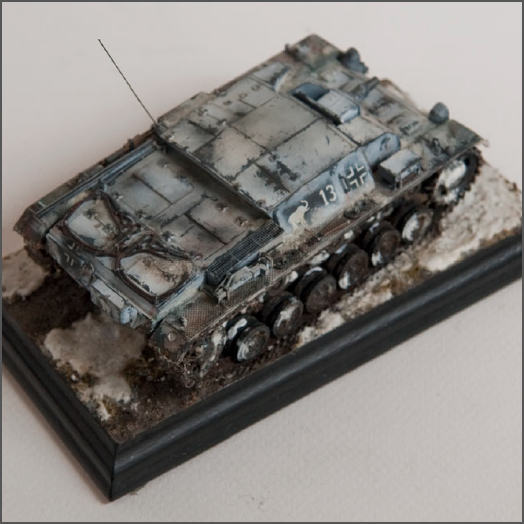 Built mostly OOB, with some wires added for some detail and some pe grills for the air intakes. The model represents a unit in the Russian early winter, or very early spring when it's just warm enough for mud to show through the snow.