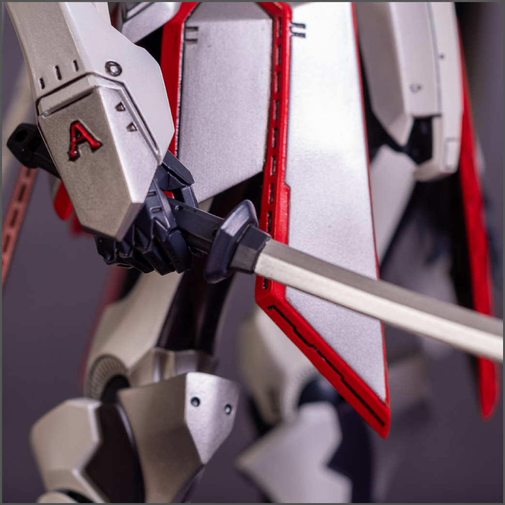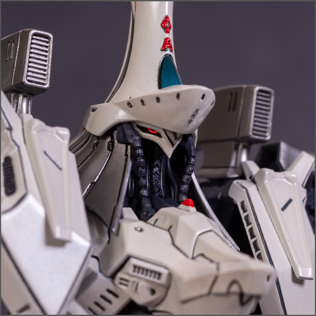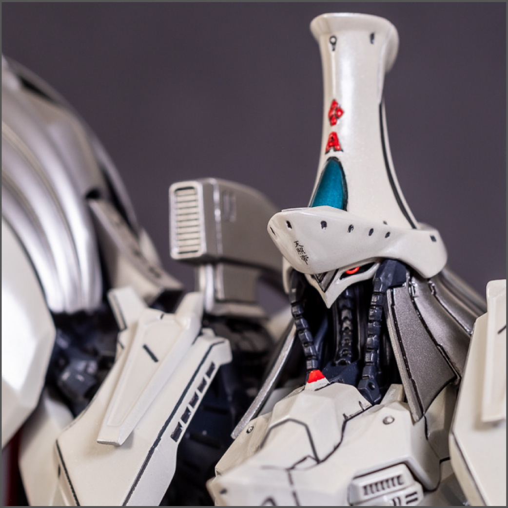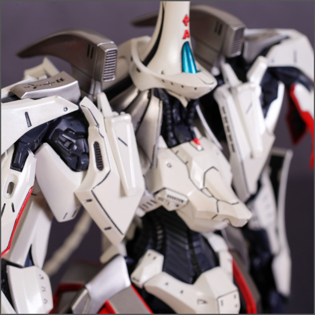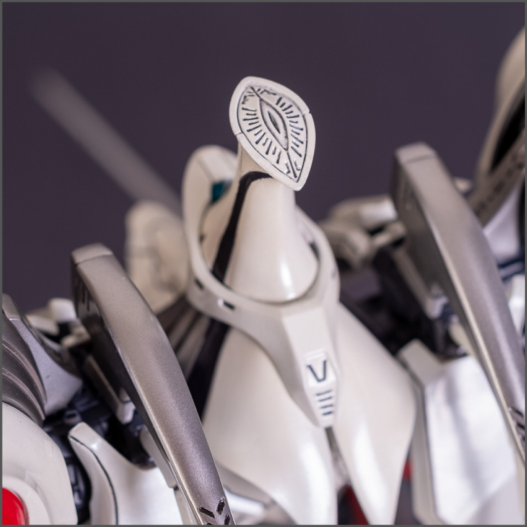 Painted with Mr Color paints mostly with the usual Vallejo for some detail bits and Gaia EX Gloss Clear for the final coating. I used a white pearl over the base color and that was causing a lot of issues. The paint would separate and crack on its own for no reason that I could figure out. One part had to be re-painted 8 times...yes, 8... because I'm an ocd perfectionist with these things.. *to a point anyway..but eventually it worked out.. after switching to a different brand..lol.