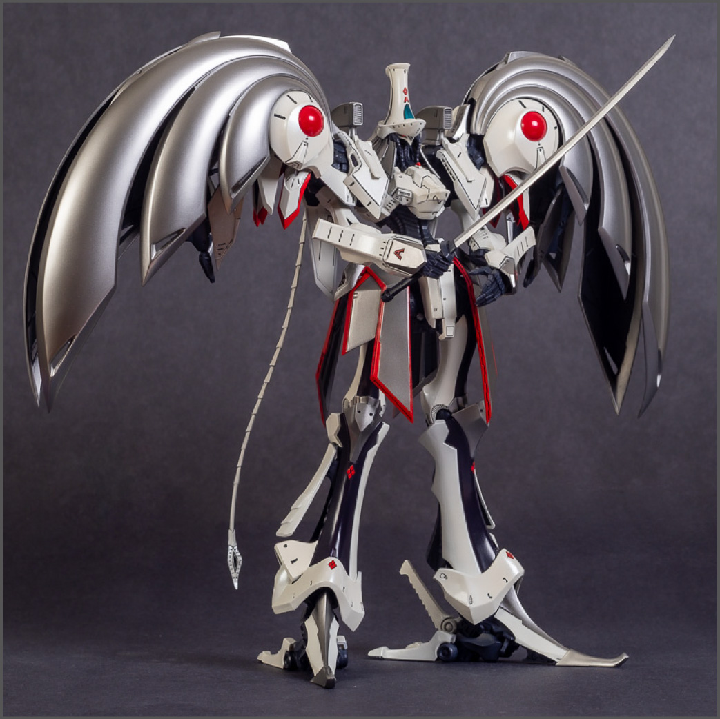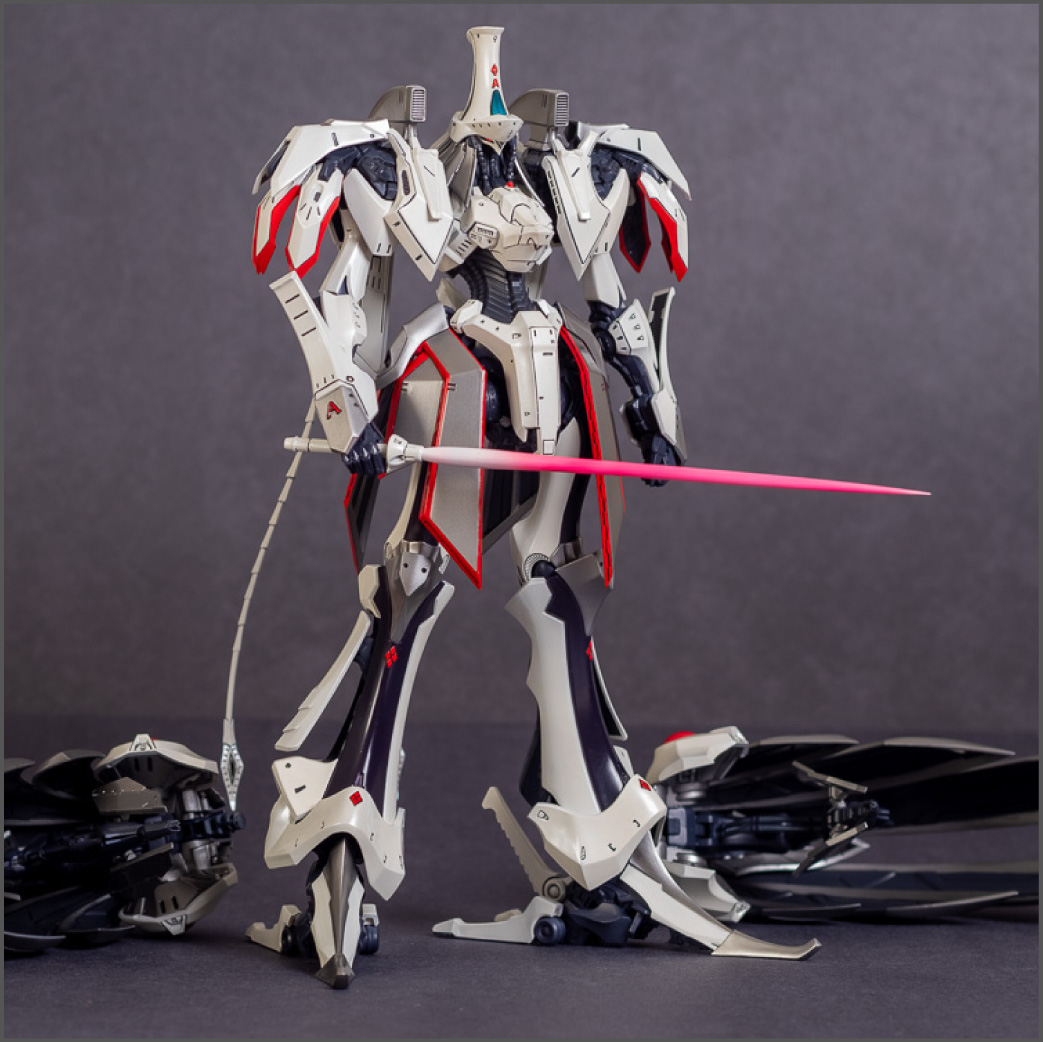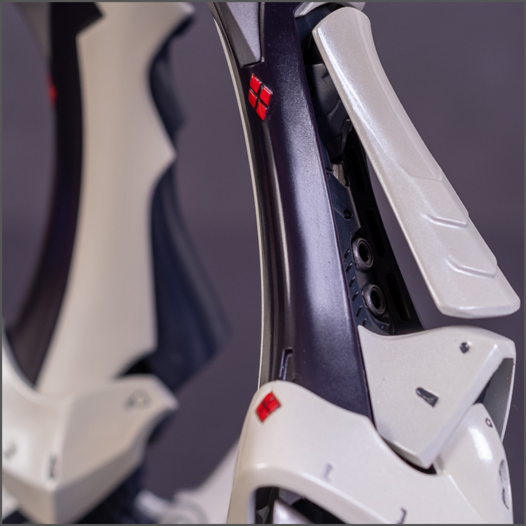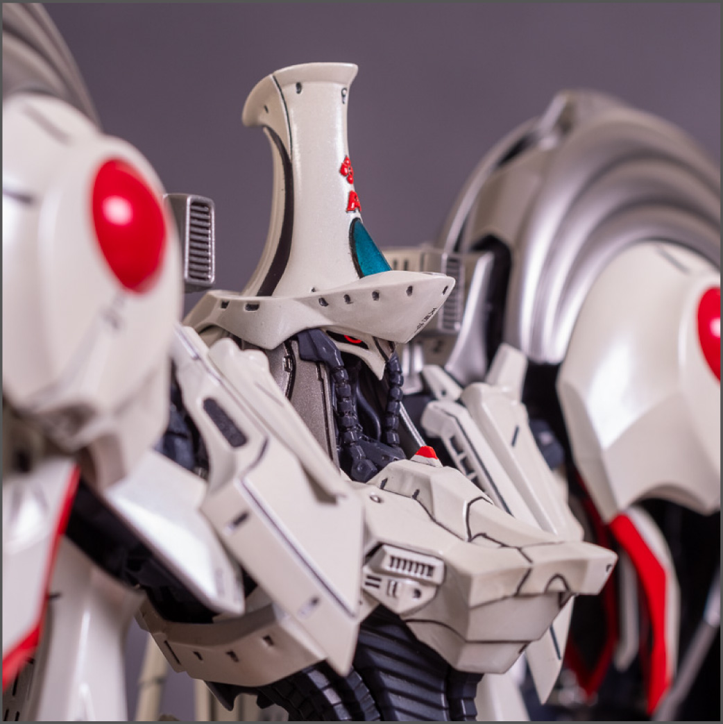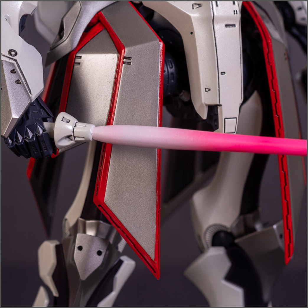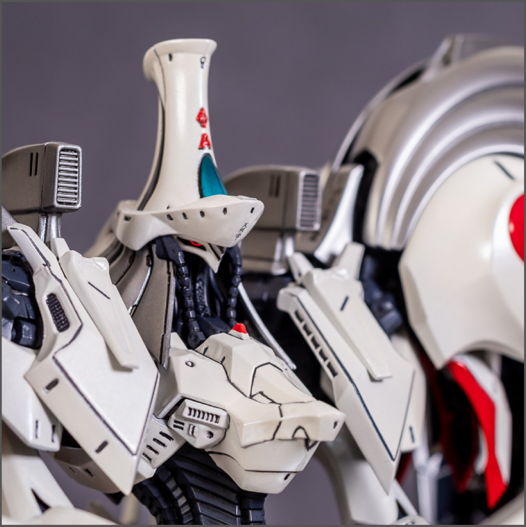 Painted with Mr Color paints mostly with the usual Vallejo for some detail bits and Gaia EX Gloss Clear for the final coating. I used a white pearl over the base color and that was causing a lot of issues. The paint would separate and crack on its own for no reason that I could figure out. One part had to be re-painted 8 times...yes, 8... because I'm an ocd perfectionist with these things.. *to a point anyway..but eventually it worked out.. after switching to a different brand..lol.
