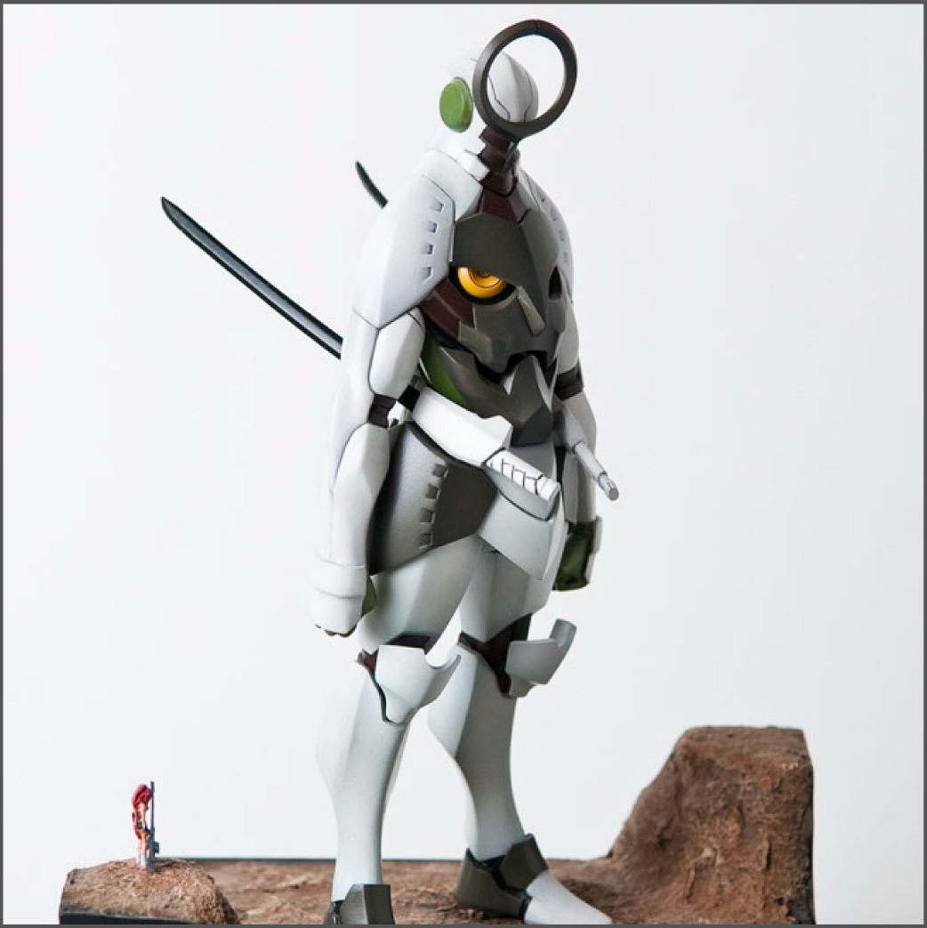 Enki is the "bad guy" mech from the anime Gurren Lagaan. I had fun with this one, although it took awhile, but mostly because of laziness. I added a little Yoko figure to add a scale reference. I think it's around 1/100 although i'm not 100% sure.