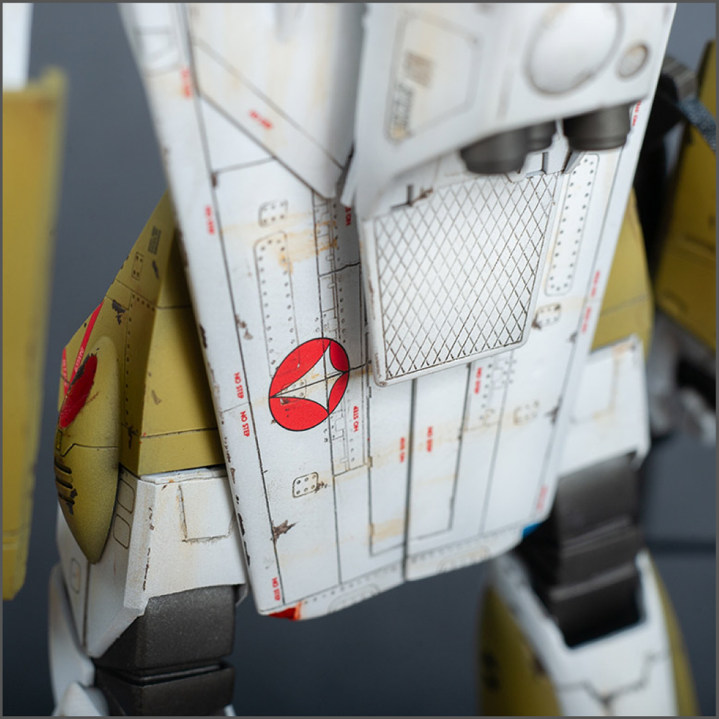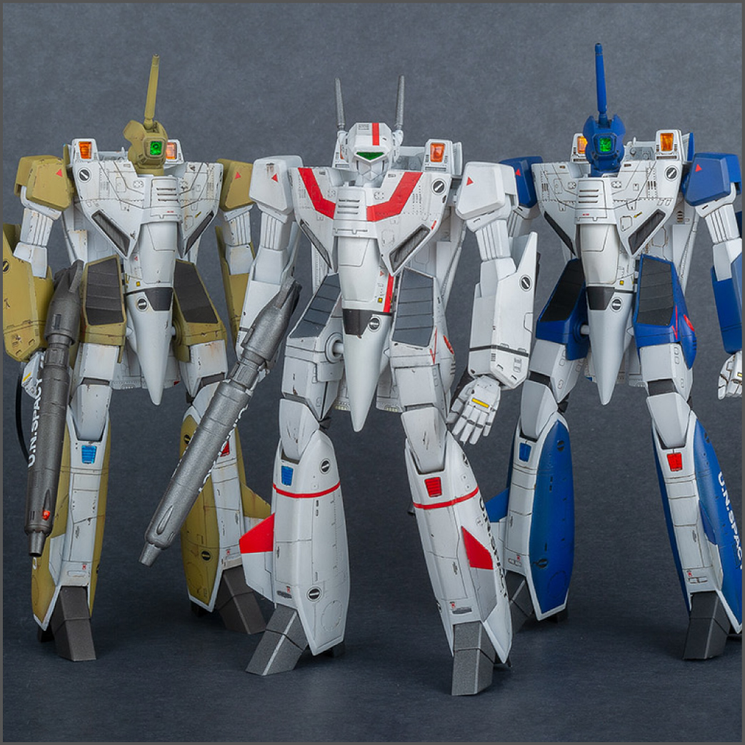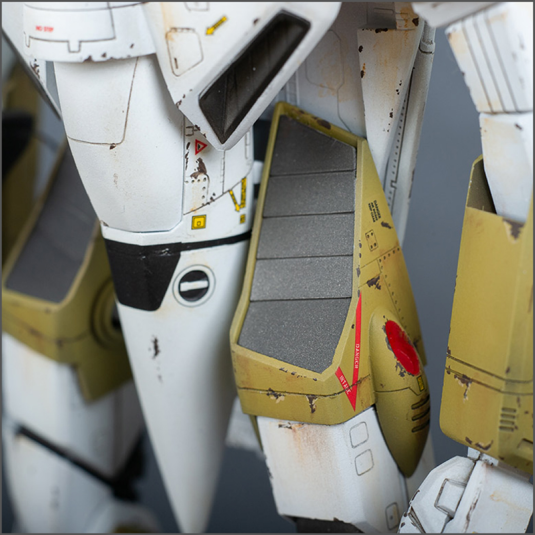 After having built Hikaru's VF-1J Battroid, then Max's VF-1A (tv version), I decided I wanted to round out the Vermillion Squadron and build Kakizaki's. So here it is. It's the same kit as the others, but just painted in his color scheme. I did some extra weathering on this one using AK weathering pencils, but other than that it was build in pretty much the same way as the other two.