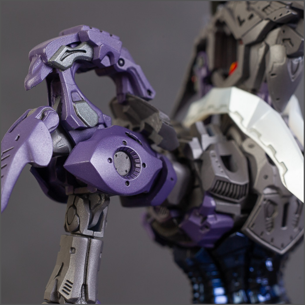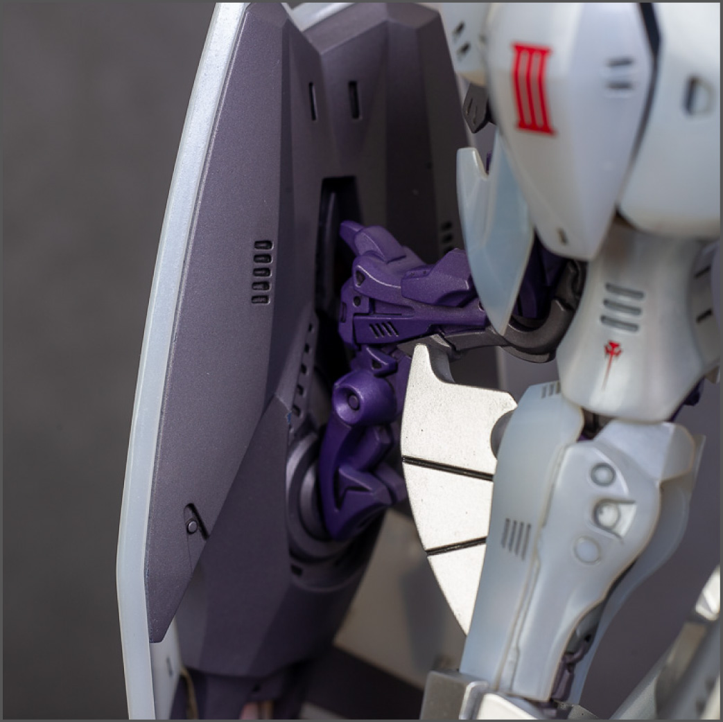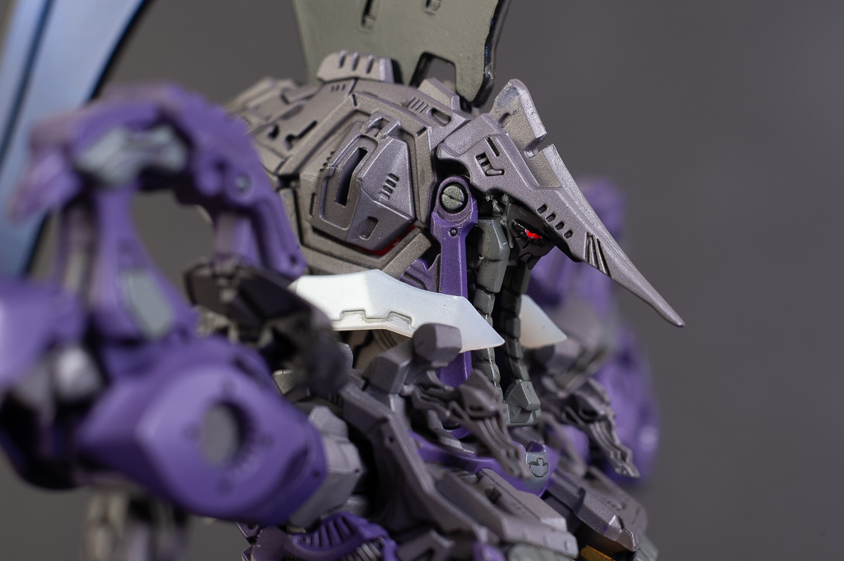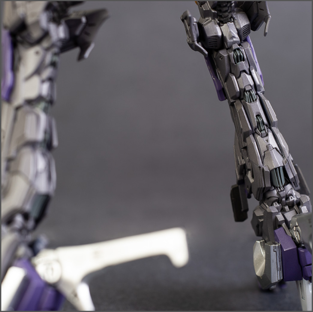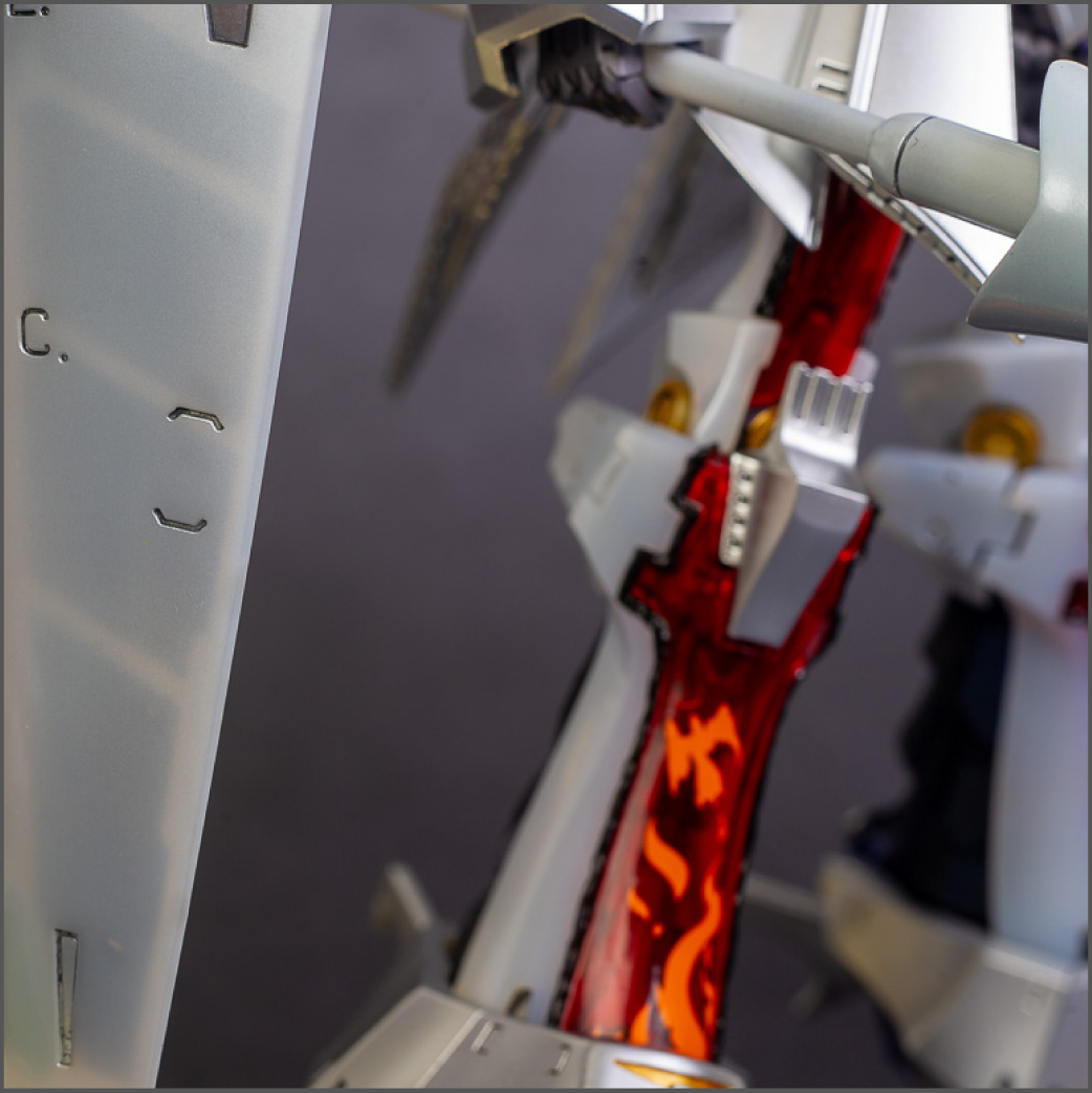 The main painting was as follows: White armor: Mr Color Lascivus Clear White, with Mr Crystal Color Moonstone Pearl on top. Blue/Black waist and "mohawk": Gloss black with Mr Crystal Color Sapphire Blue over it. The frame is just straight up Mr Color Purple and the grey is a mix of some stuff.. it's in the manual, but I forgot what it was. Silver: Tamiya lacquer Sparkling Silver Gold: Gaianotes Star Bright Gold and... some detail bits with Vallejo I took pics of the frame too, so check them out. They're permanently covered with the armor now, so stuff like the Fatima cockpit in the head are sealed forever, but at least I have the photos.