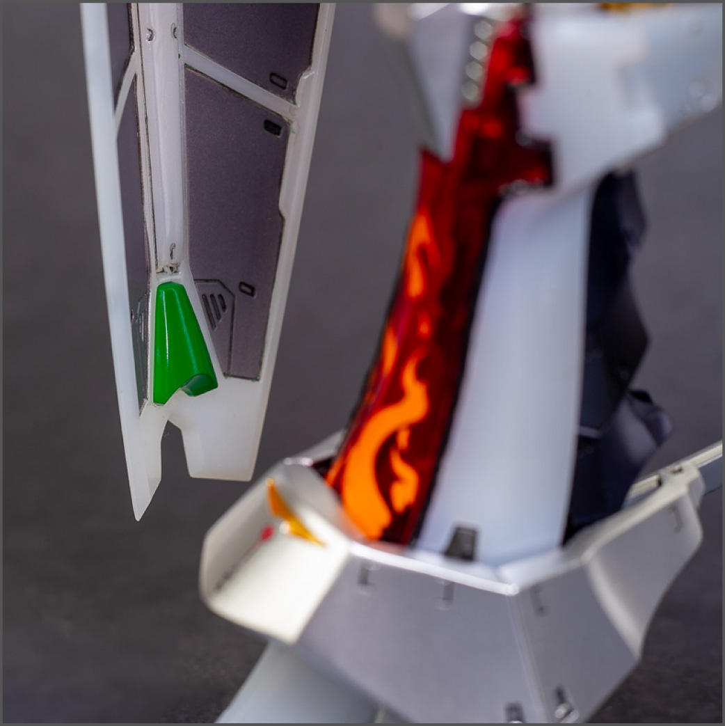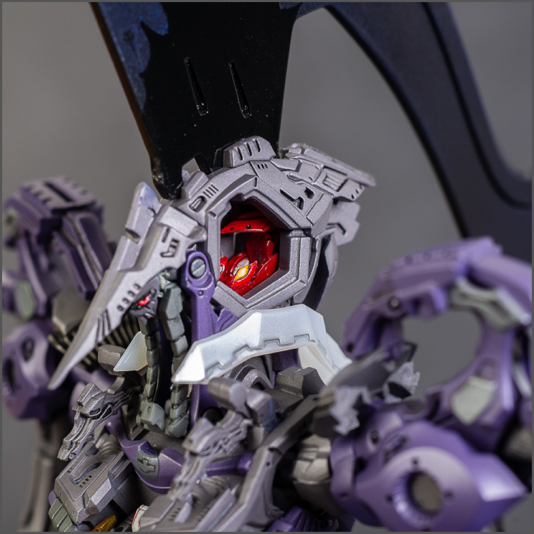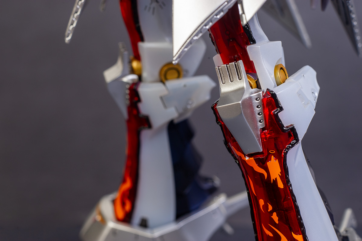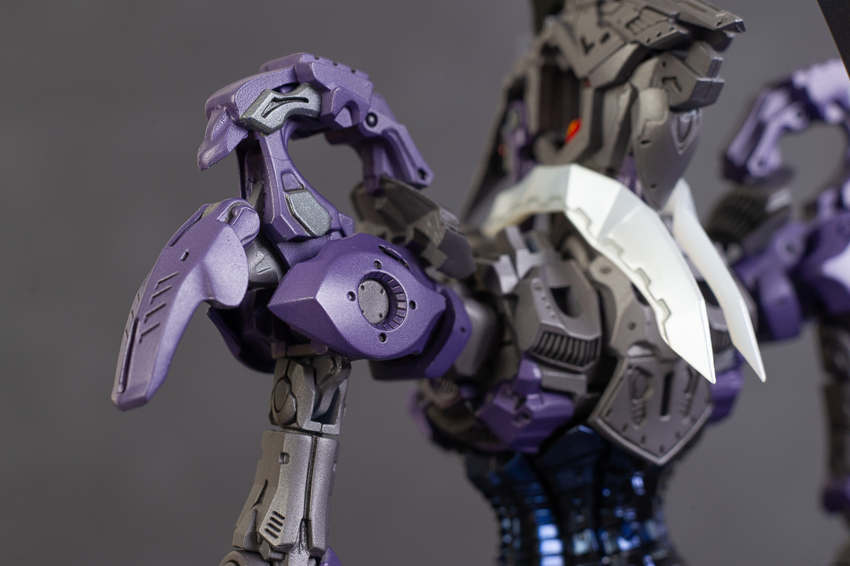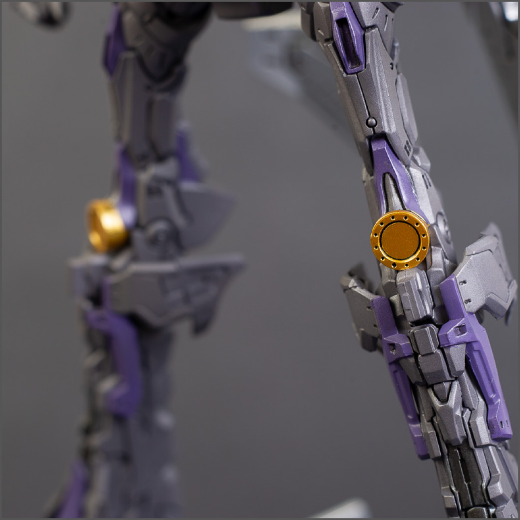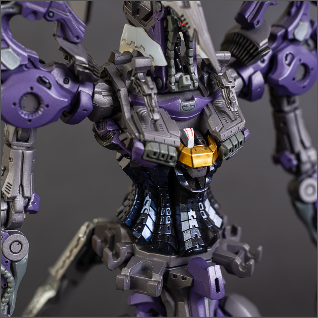 The main painting was as follows: White armor: Mr Color Lascivus Clear White, with Mr Crystal Color Moonstone Pearl on top. Blue/Black waist and "mohawk": Gloss black with Mr Crystal Color Sapphire Blue over it. The frame is just straight up Mr Color Purple and the grey is a mix of some stuff.. it's in the manual, but I forgot what it was. Silver: Tamiya lacquer Sparkling Silver Gold: Gaianotes Star Bright Gold and... some detail bits with Vallejo I took pics of the frame too, so check them out. They're permanently covered with the armor now, so stuff like the Fatima cockpit in the head are sealed forever, but at least I have the photos.