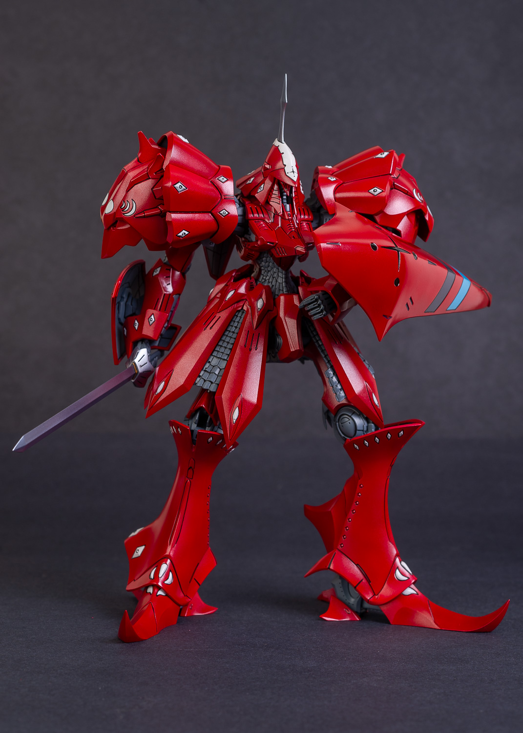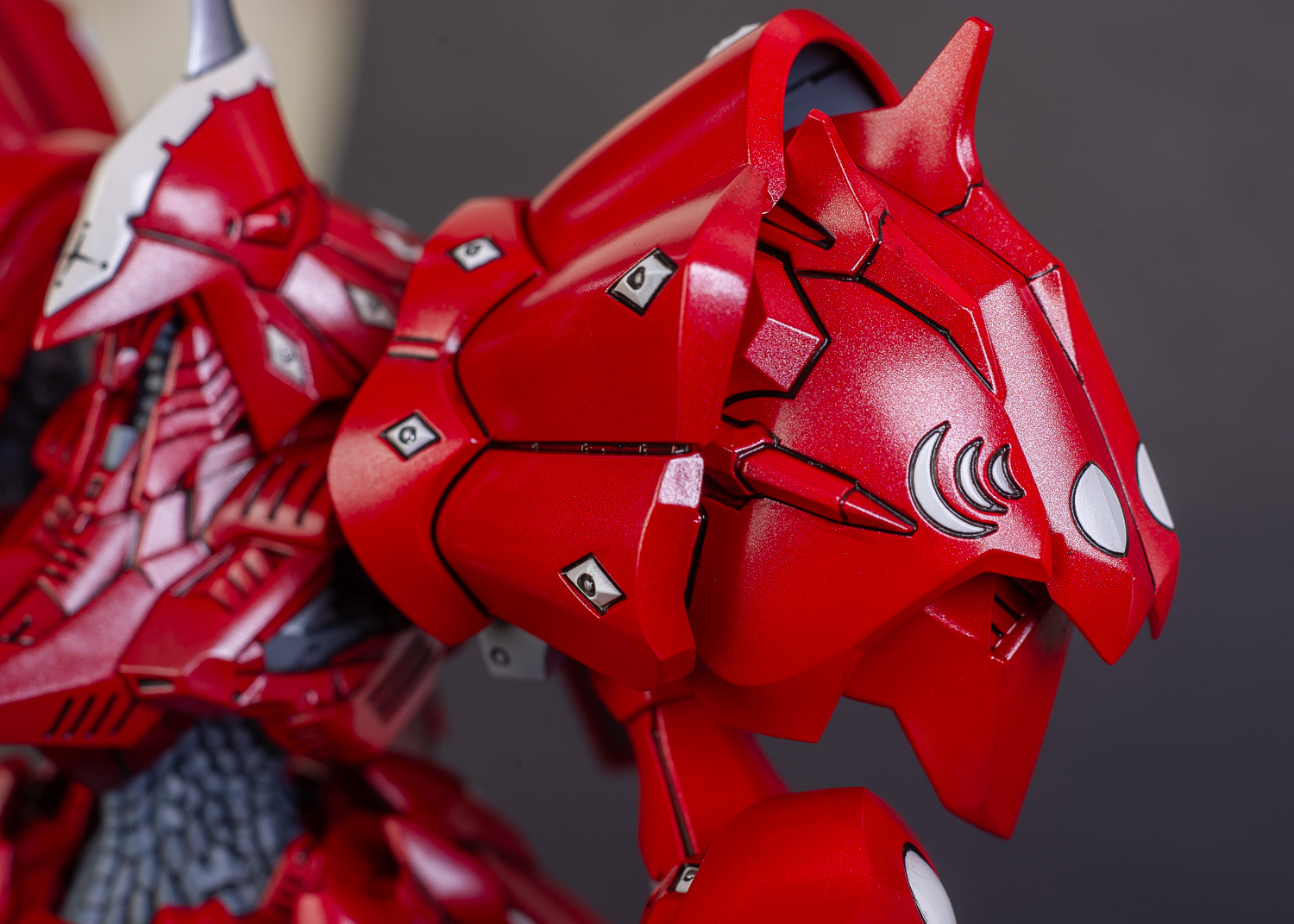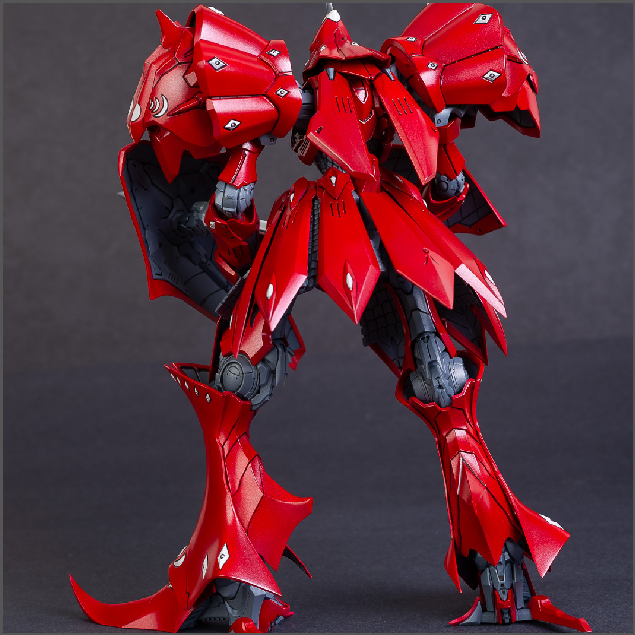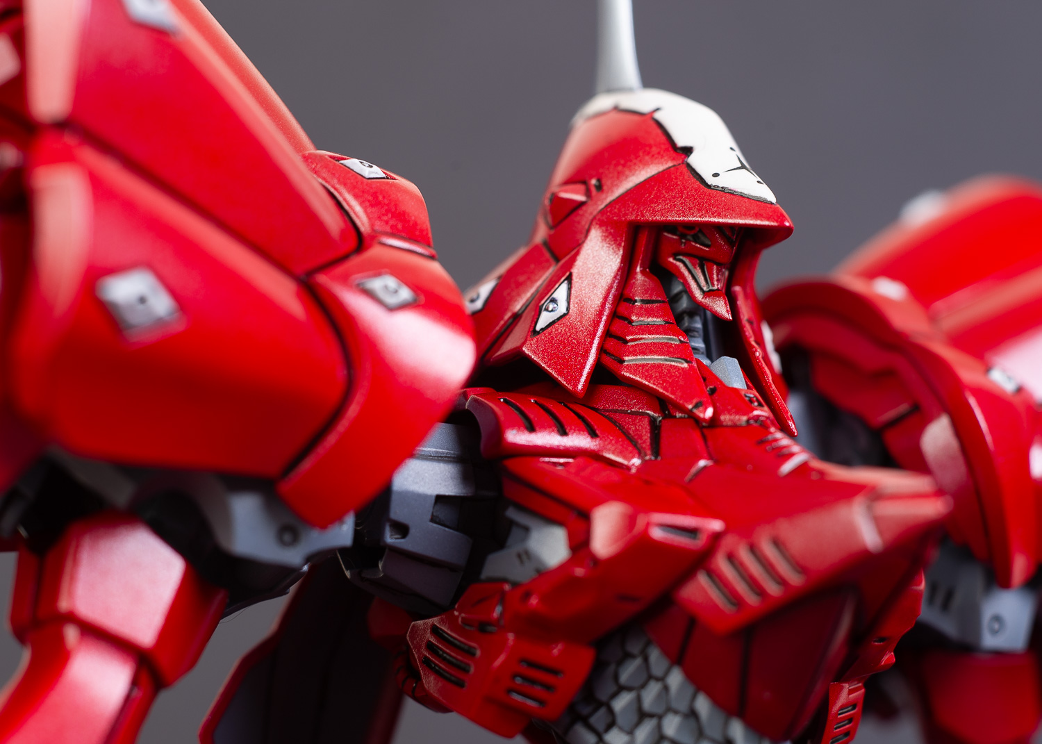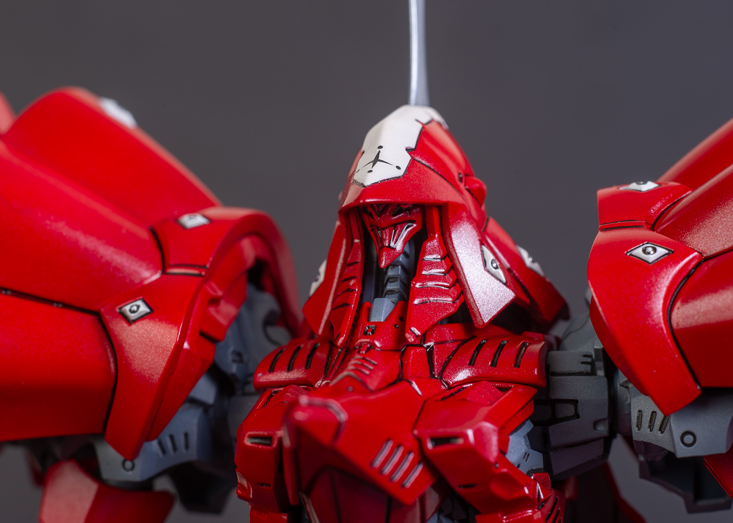 I've finished another Mortarheadd. This time the 1/100 IMS Sirene F kit released early 2025. It...looks...AWESOME! This red version is the Red Group leader of the Fillmore Empire's Kneu Syltiss Knights. Headdliner (pilot) = Brauma Ik Fatima (co-pilot) = Obriside I'm super happy with the end result, although I did have a little bit of user error trouble and had to repaint some of it a couple times. (dust and stuff). The build itself was pretty straightforward. It has screws in the joints that allows for better posing compared to past IMS kits so that's pretty cool. A few seamlines to fill, but not too bad. The red is a mix from the manual with a white pearl clear over it. I was a little skeptical of white pearl over red at first, but it add the beautiful color pop to the bulky design and it actually looks pretty badass. note: there's a pearl coat over it so for some reason it looks less glossy than it actually is :(