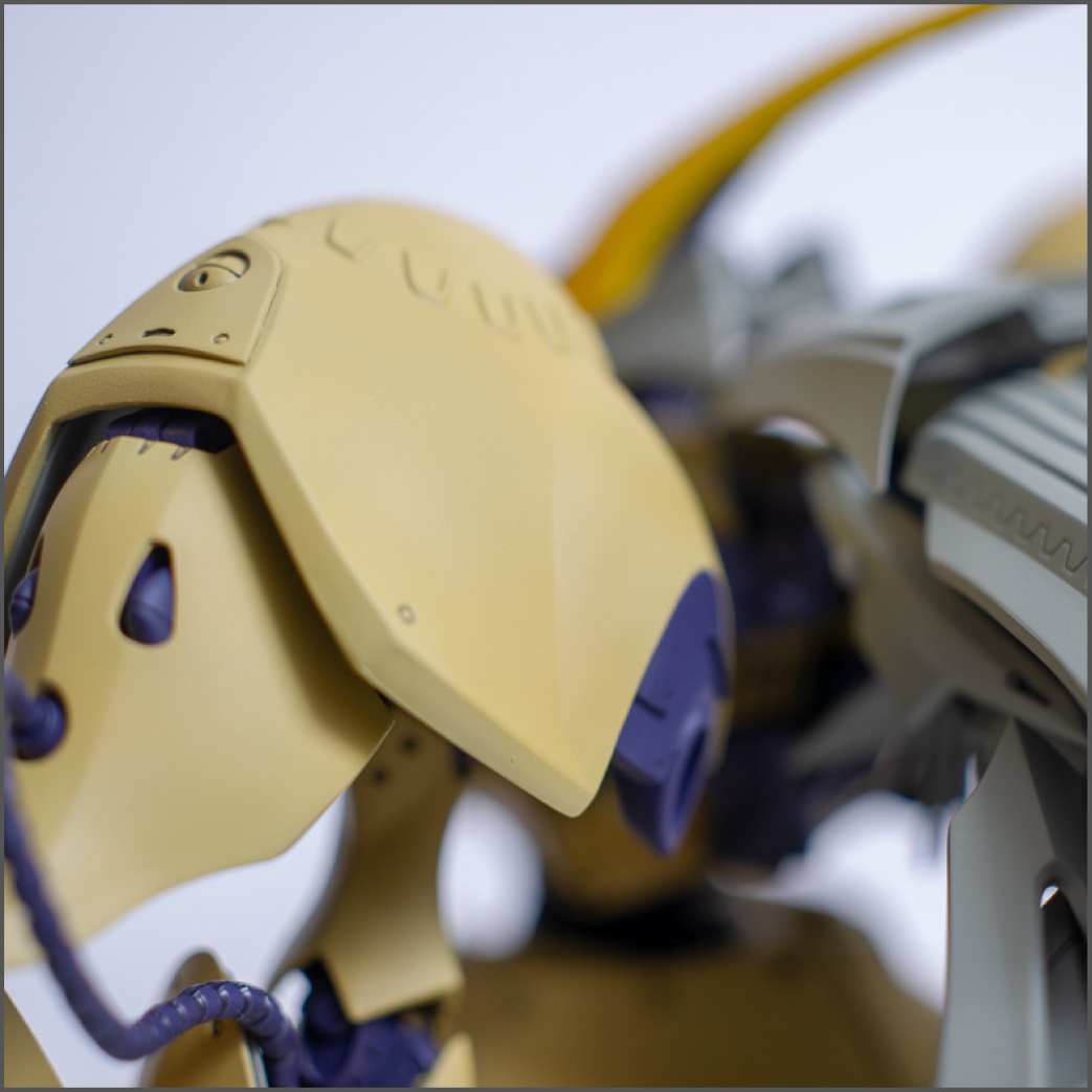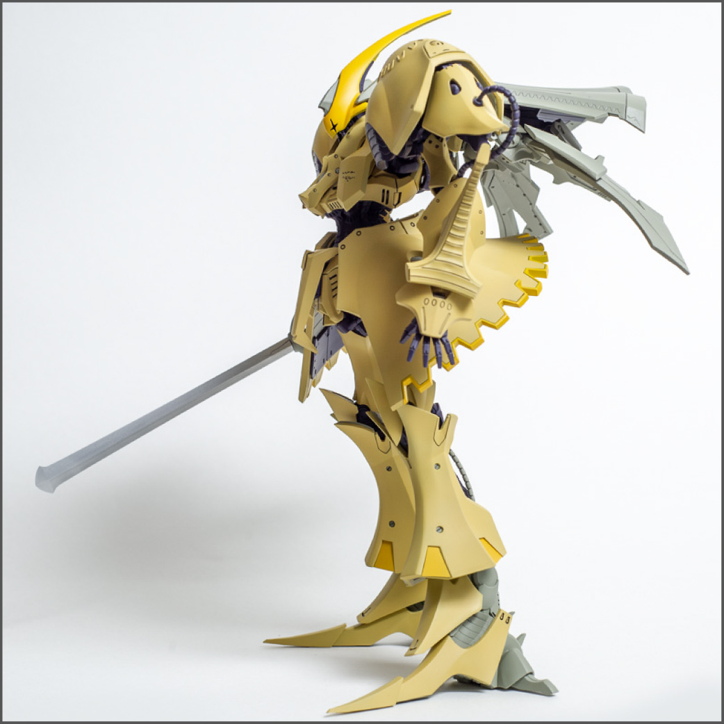 Another commission build for Volks' U.S. office. This is a newer kit than the KOG and it shows. It was a lot easier to build. It didn't hurt that it's a matte finish, which is easier than a gloss finish since you don't have to worry as much about dust and cat hairs getting stuck in it. Only one decal on the whole thing too. The huge backpack makes it a little back heavy so you have to pose it just right to make it stand properly, but it looks really cool when finished.