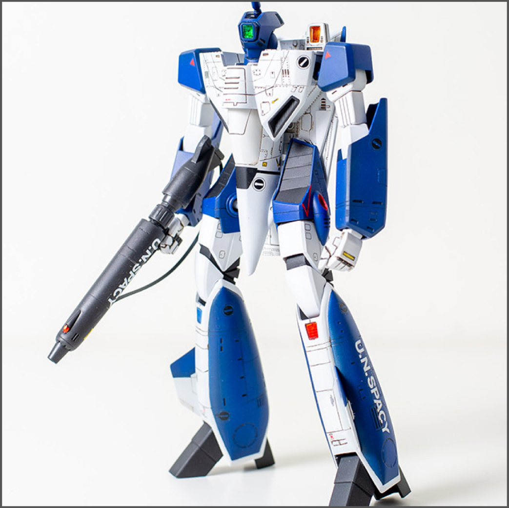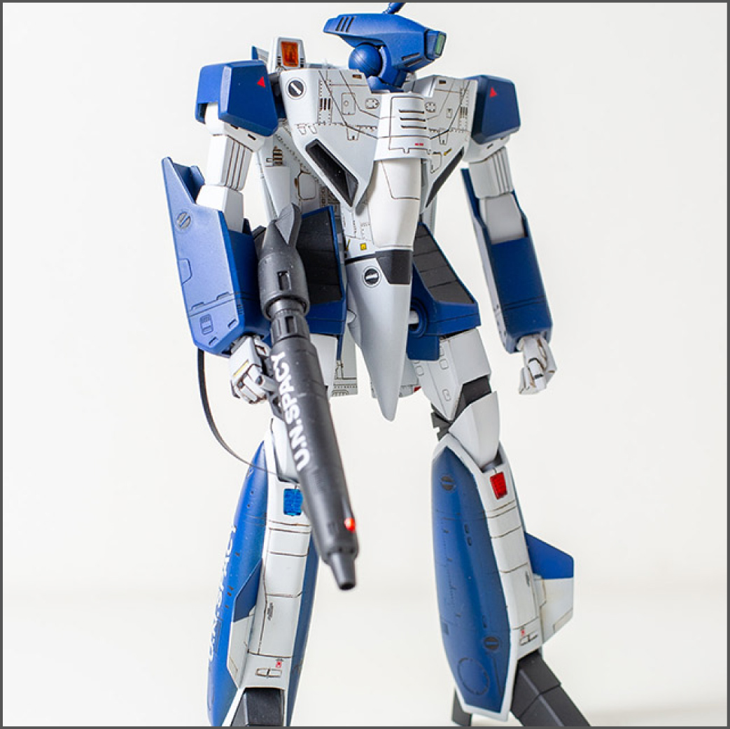 It's the basic Hasegawa Battroid. I didn't do anything special with it other than the color. If you've ever built one, then you know that there are a lot of seam lines and mold sink-marks to fill, so I wouldn't say it's a beginner kit, but it is a lot of fun. I used Mr Color paints, custom blue mix. Tamiya panel wash. That's it. I'm really happy with the result and hope you enjoy looking at it. I plan to also build Kakizaki's Battroid to round out the Vermillion squad (RIP Kakizaki)