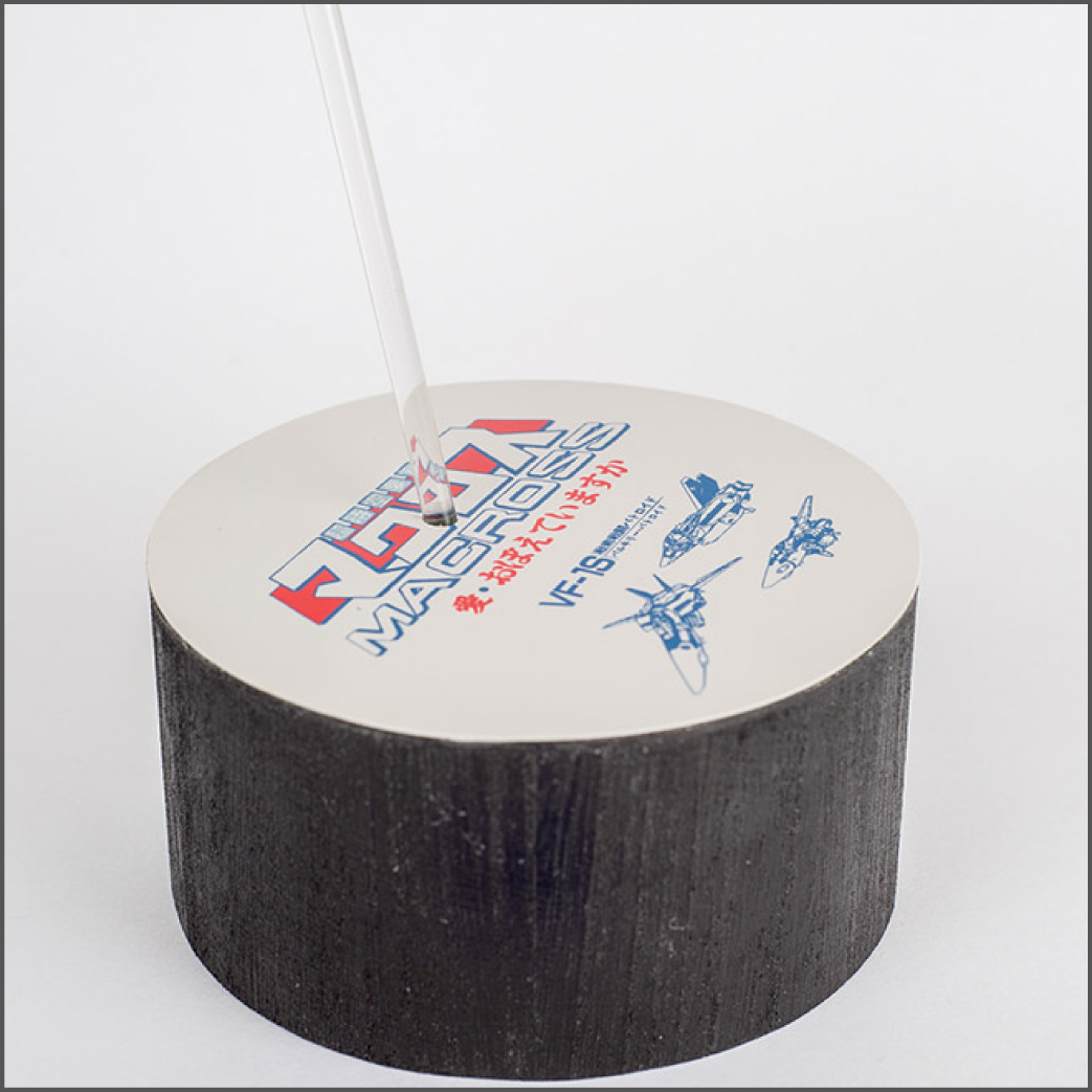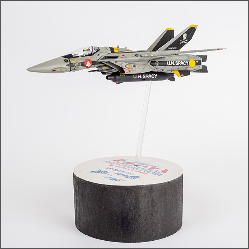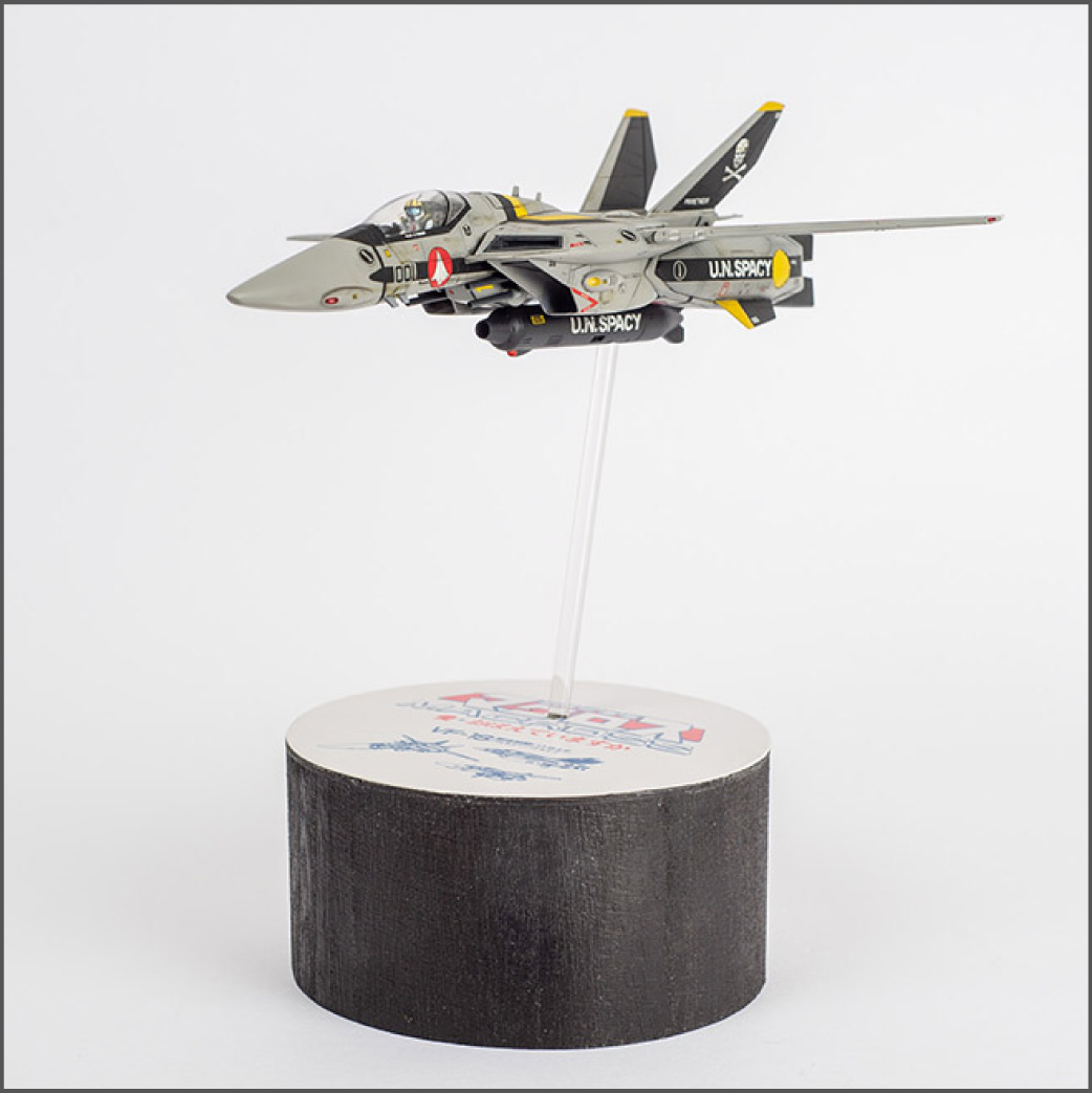 I'm pretty happy with the way it turned out, although it's not perfect. It's pretty much an airplane model in this form, and I haven't built many aircraft models after all, so it was probably a learning experience as well. I've also never built an aircraft model in flight, so I had to figure that out too. I used a standard acrylic rod and drilled a hole in the gun pod, reinforced from the inside with some epoxy putty. I wanted to do something special for the base, so I found some old lineart and added it to the movie version logo, created with Adobe Illustrator. I think it worked pretty well. |