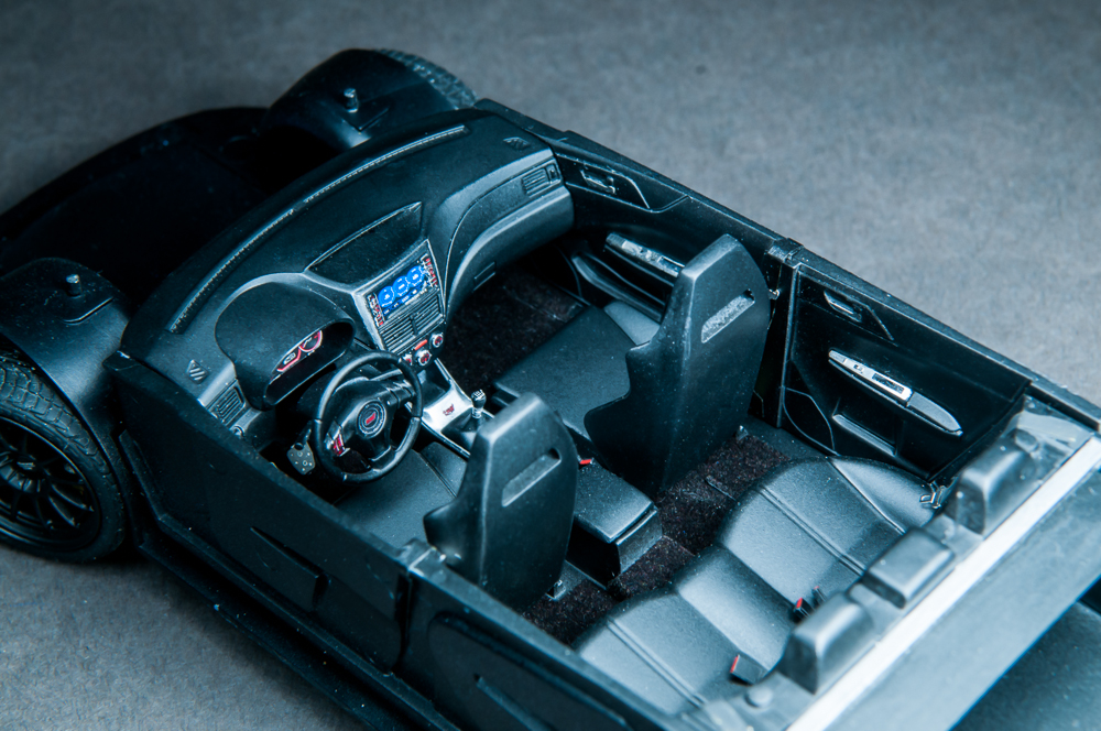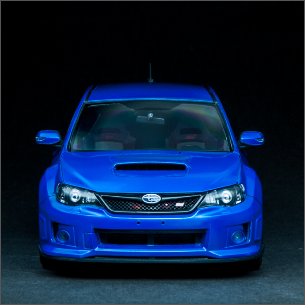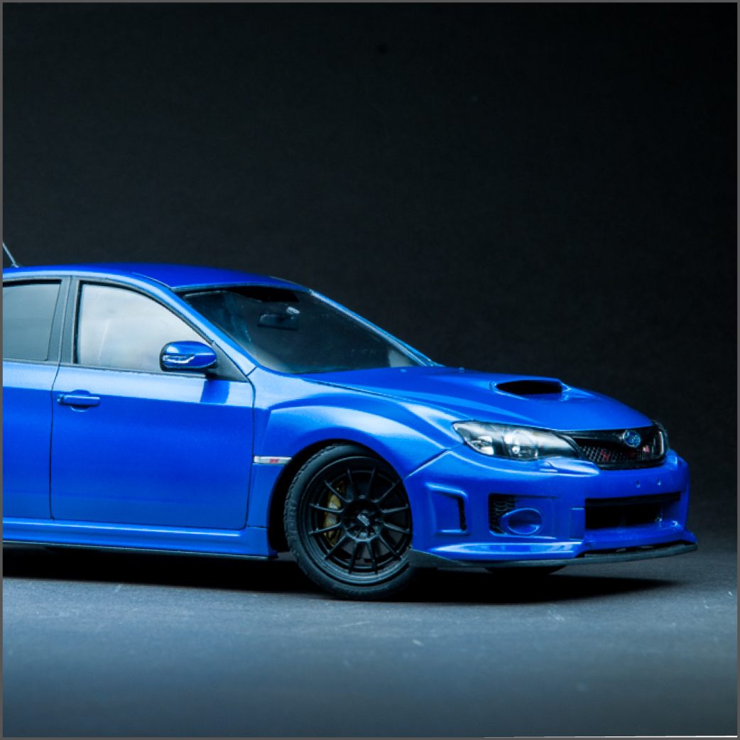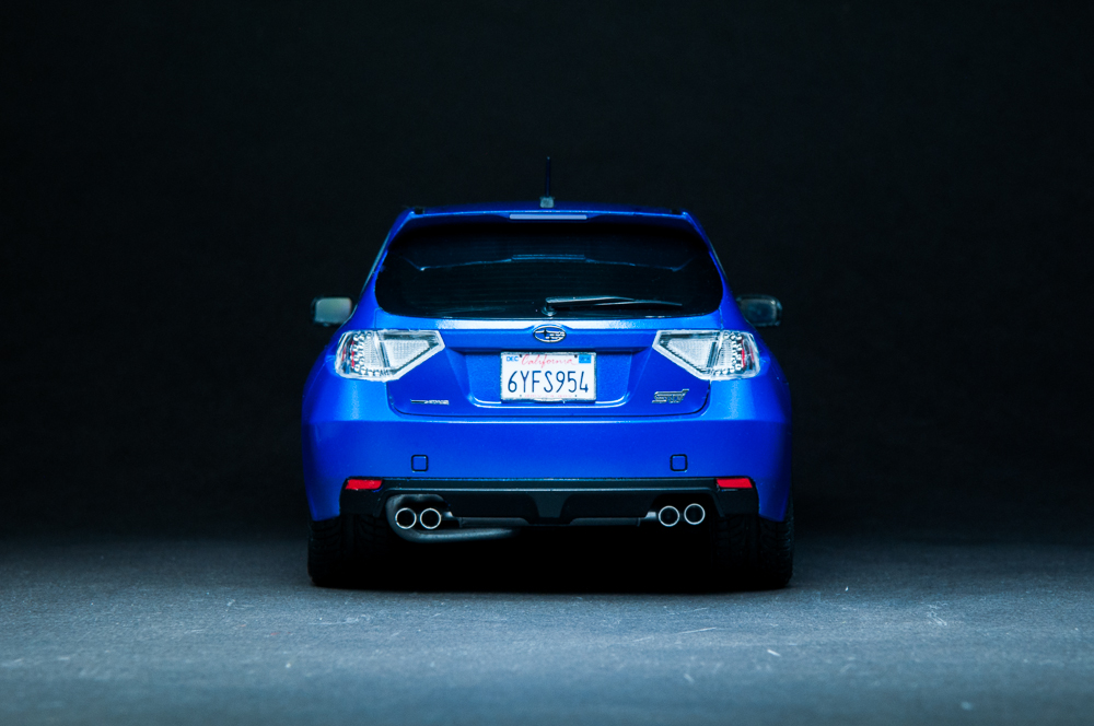 I knew this guy a while back that was into JDM cars. In fact, it was he that got me hooked on them. He's the one that told me about the WRX/STi, as well as its rival, the Evo. After that, my interest in Japanese sports cars seemed to lean in that direction. I've been into turbo cars for a while since owning my DSM, just something about that feel of boost, so when it was time for a new car, it was going to be a turbo, no doubt about it. I also wanted all-wheel-drive because I like to snowboard in the winter, plus lack of grip sucks, so I ended up with a 2013 WRX hatchback. Naturally, I wanted to build a model of it, but there is no "regular" WRX kit, so I got this STi kit, which essentially looks identical to my car, so it worked out well. I added some aftermarket Enkei NT-03M wheels and a photoetch detail set. Paint is from the Subaru dealer and here is the result.