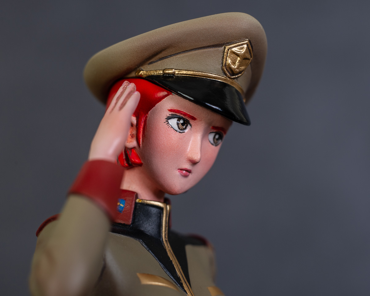 I dunno what kinda mold release they used on garage kits back in the day, but it took forever to get it all off, and there may have still been some left because I had a little bit of trouble with some paint chipping, even though I was using Mr Color lacquers. That's ok though, easy touchups and she's good to go.