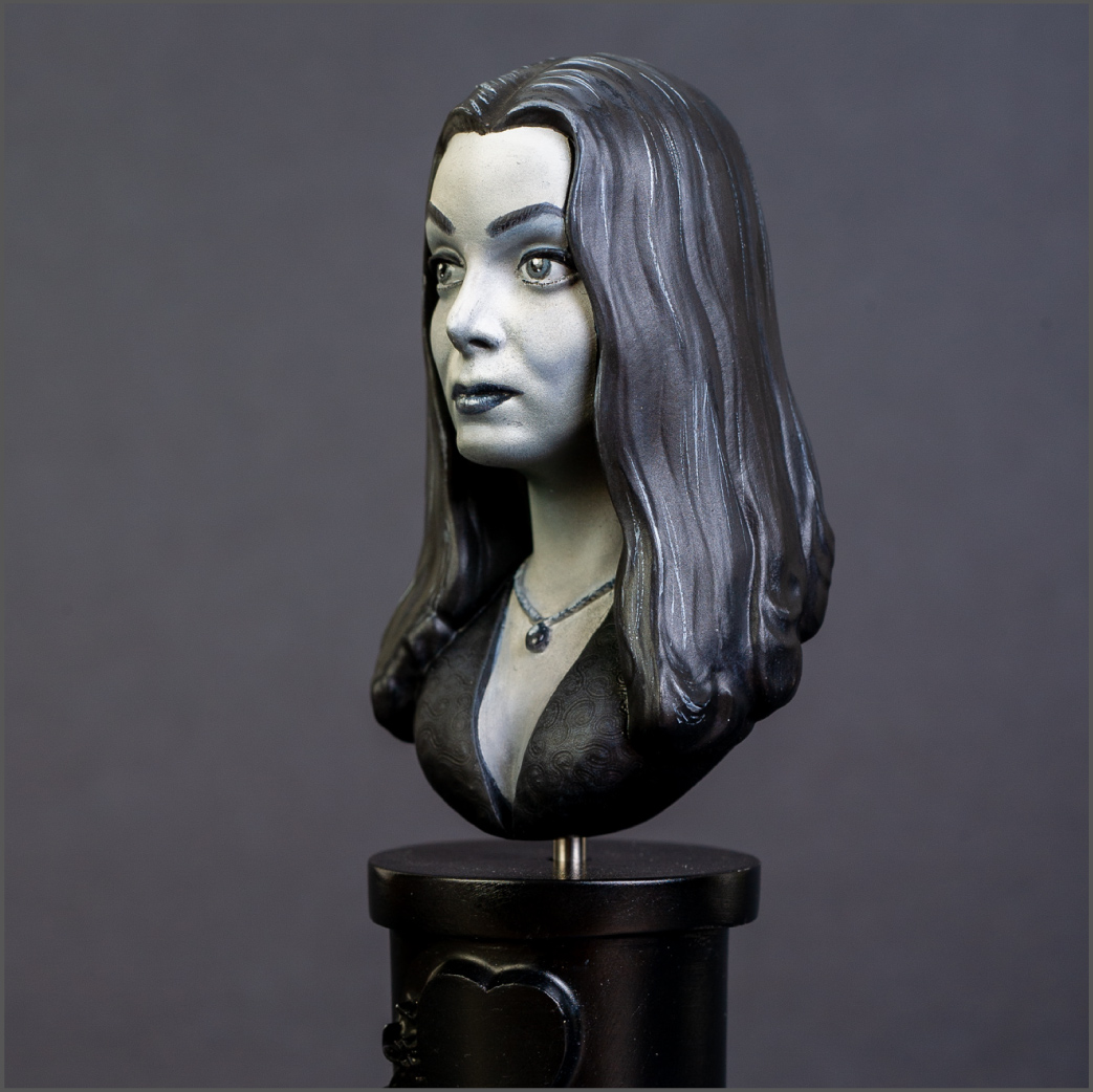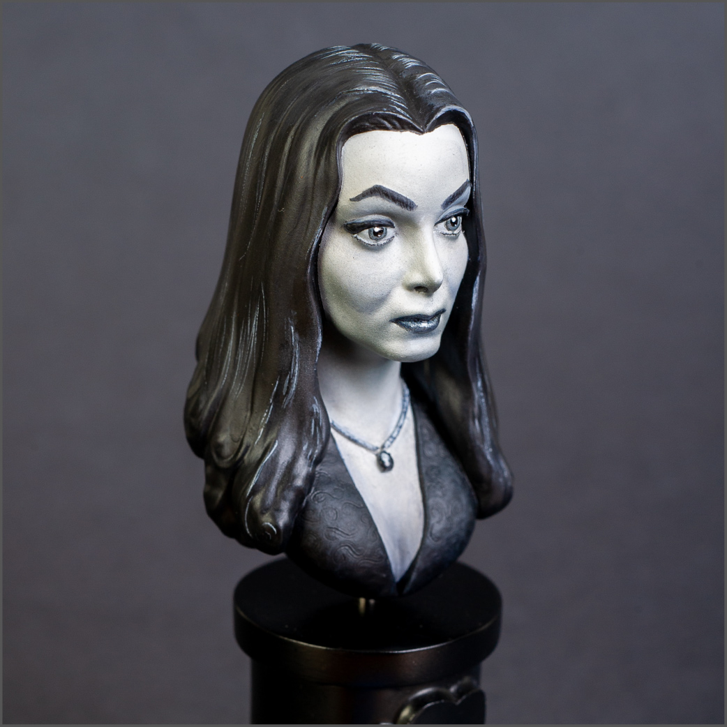 I grew up watching The Addams Family with my dad, so I have fond memories of the show. A while back, I happened to see this resin bust at one of the vendors at a contest I was attending. It was fairly priced so I picked it up. I decided to try painting it in monochrome since the show was black and white. It'd be the first time i'd ever done a monochrome paintjob on a model. I think it turned out well.