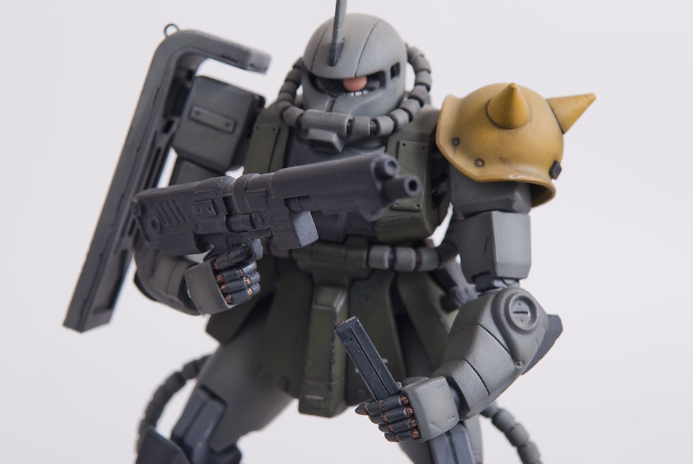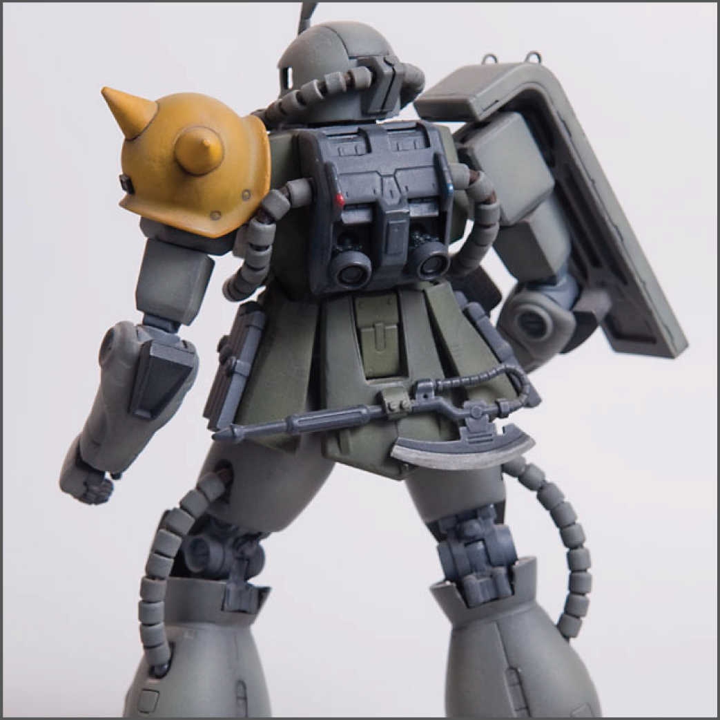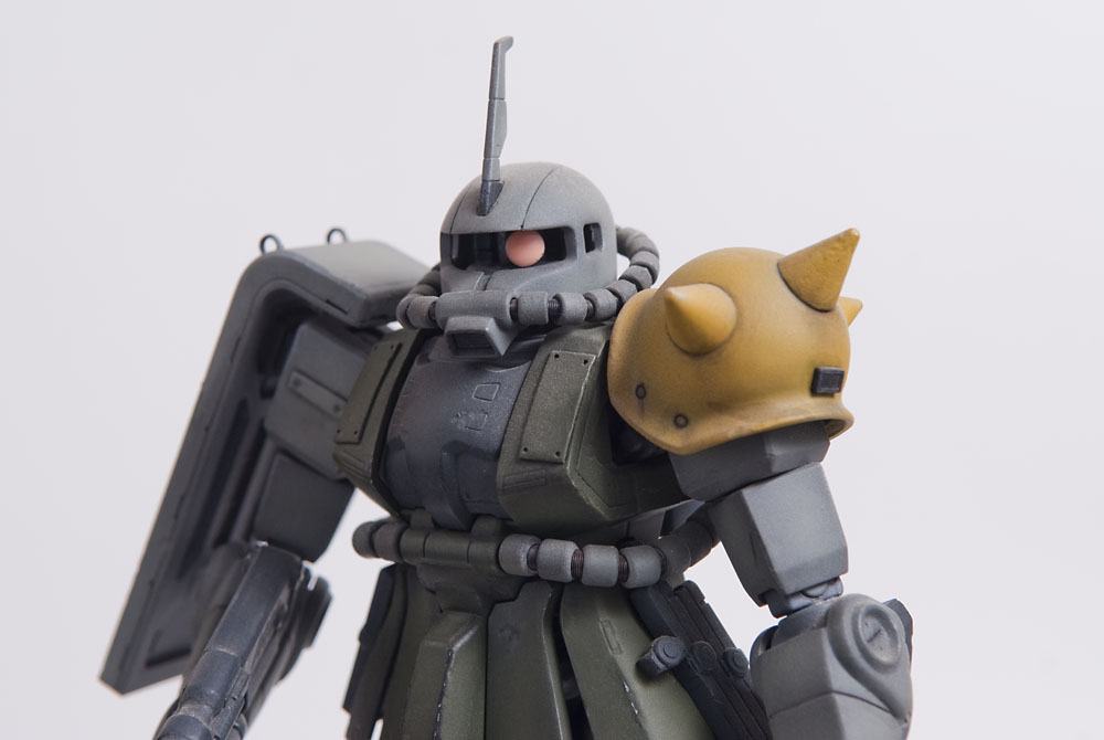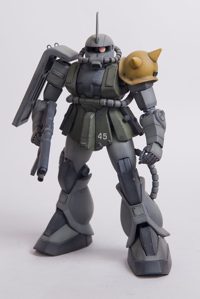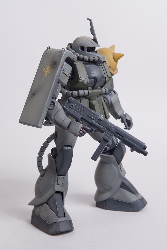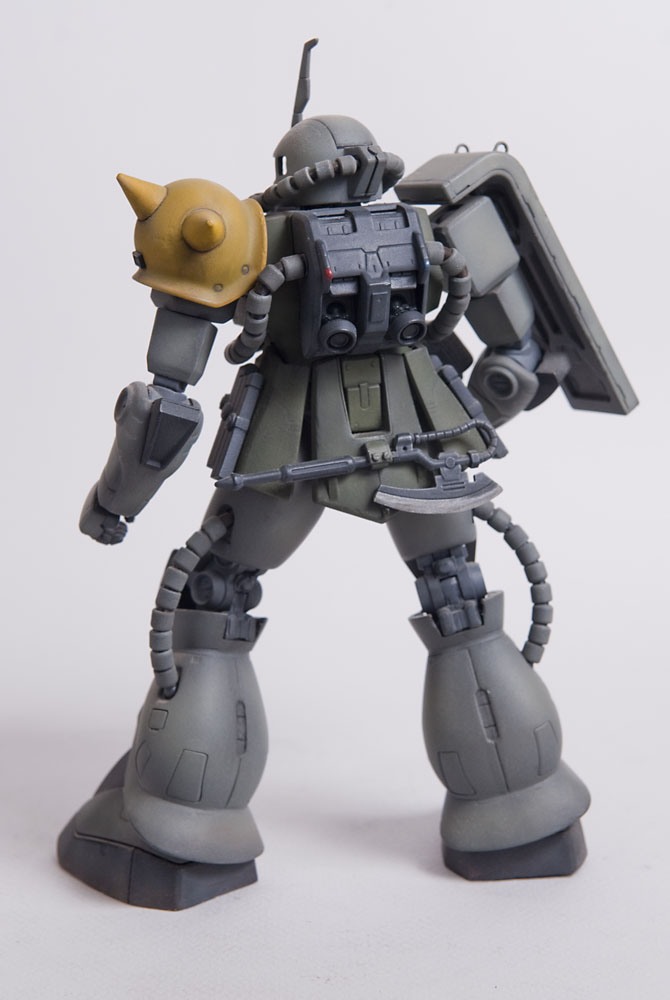 The Zaku II was the second ever Master Grade kit and it shows by today’s standards, but in it’s glory days it was top of the line engineering. I modified this one’s feet slightly so it could spread its legs a little more than stock to give it a little bit more of an aggressive pose. I added some little bits here and there to detail it up a little, including a rear mount for the heat hawk axe.