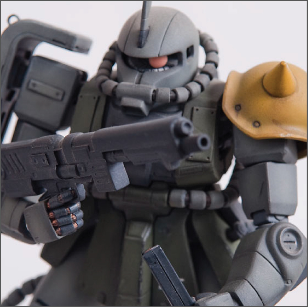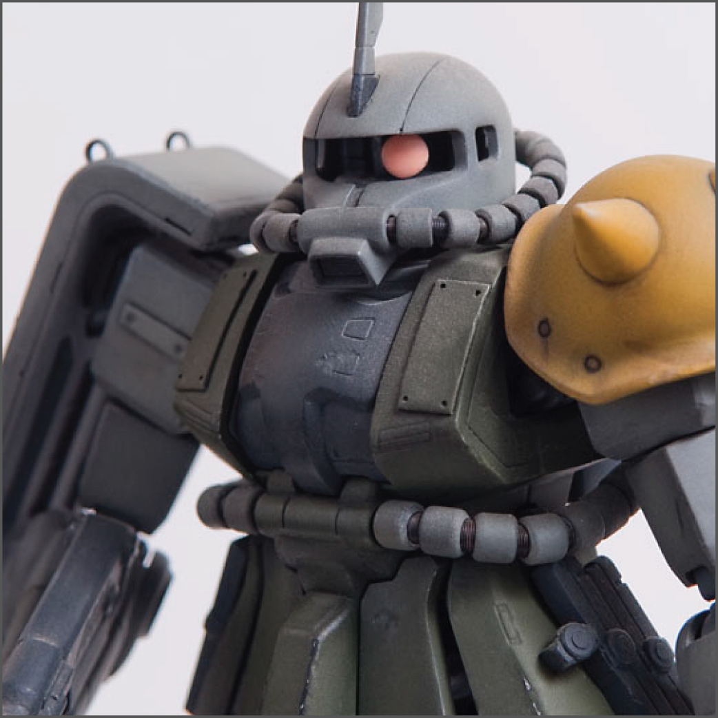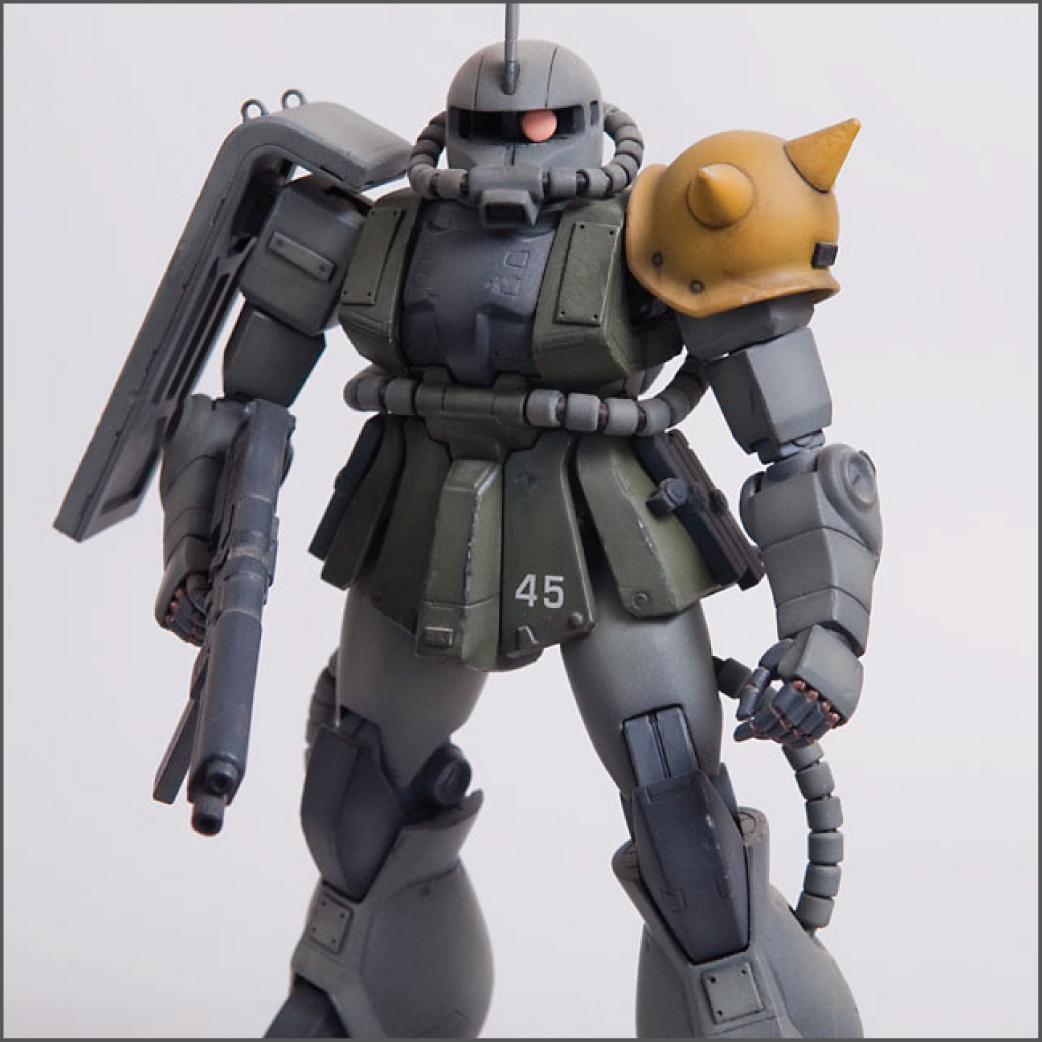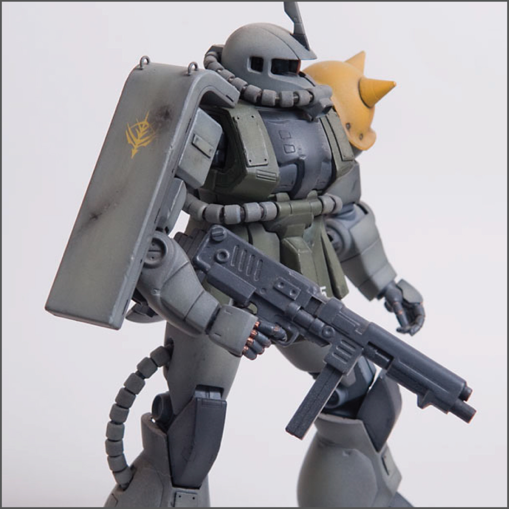 The Zaku II was the second ever Master Grade kit and it shows by today’s standards, but in it’s glory days it was top of the line engineering. I modified this one’s feet slightly so it could spread its legs a little more than stock to give it a little bit more of an aggressive pose. I added some little bits here and there to detail it up a little, including a rear mount for the heat hawk axe.
