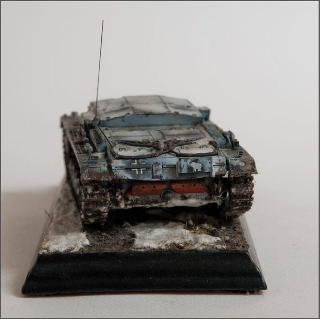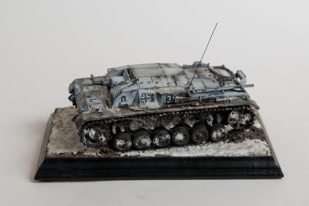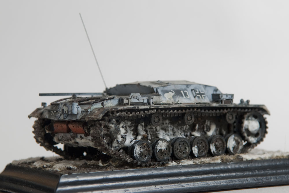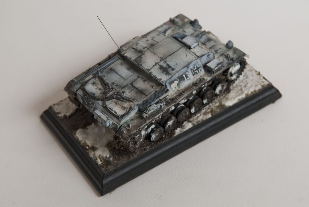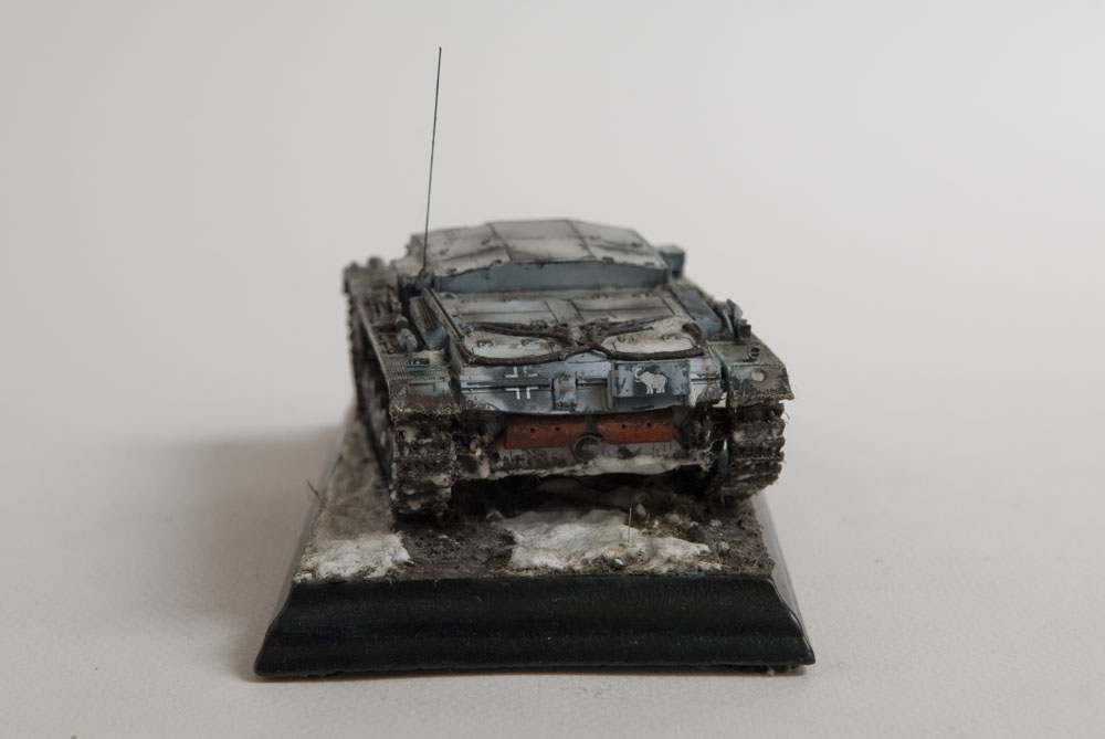 Built mostly OOB, with some wires added for some detail and some pe grills for the air intakes. The model represents a unit in the Russian early winter, or very early spring when it's just warm enough for mud to show through the snow.