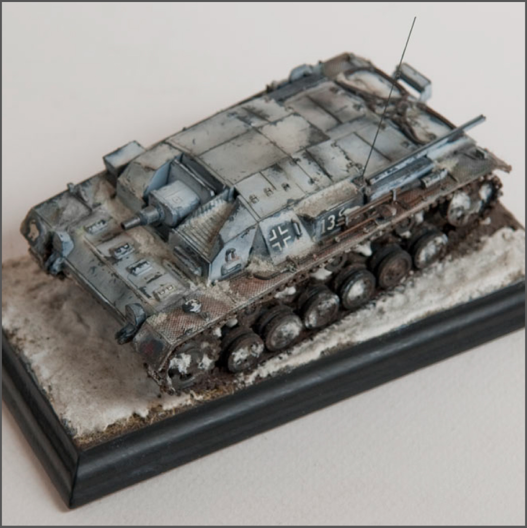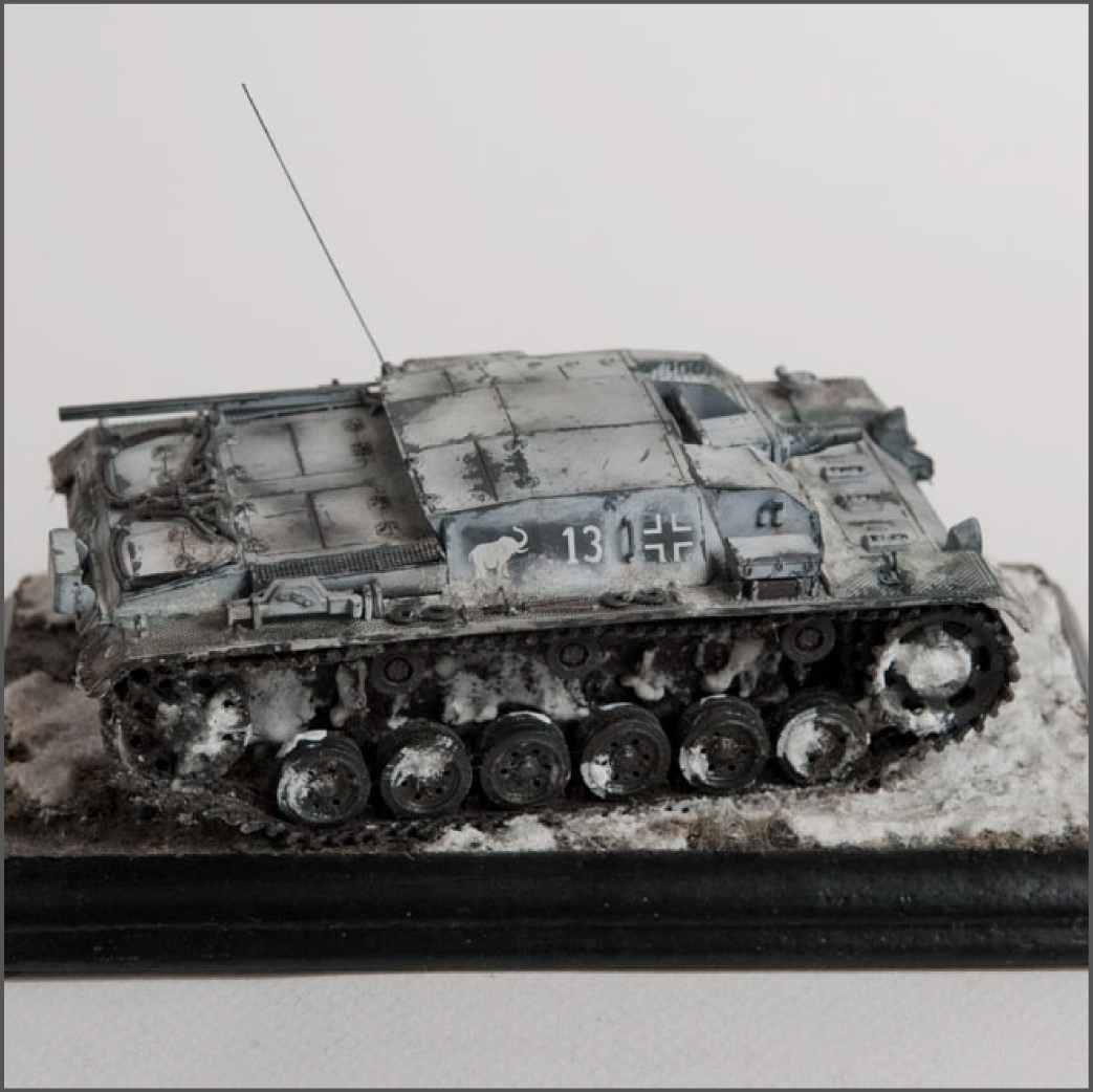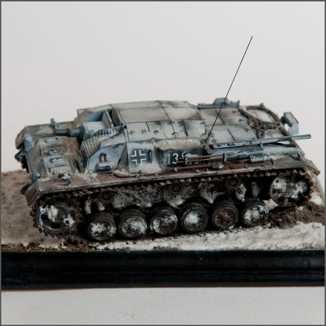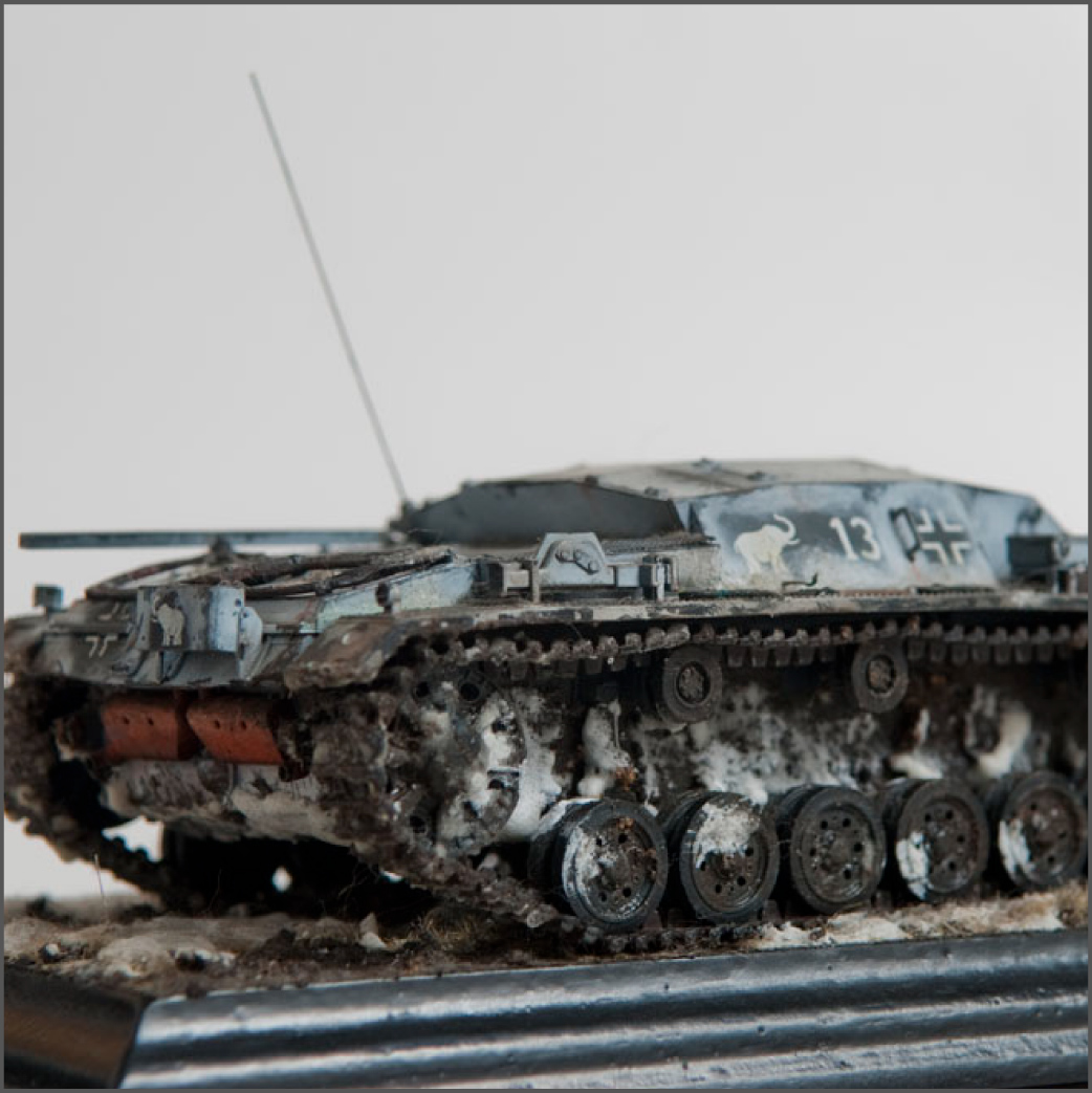 Built mostly OOB, with some wires added for some detail and some pe grills for the air intakes. The model represents a unit in the Russian early winter, or very early spring when it's just warm enough for mud to show through the snow.