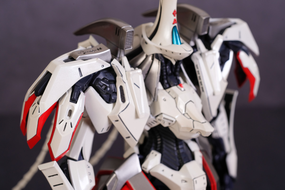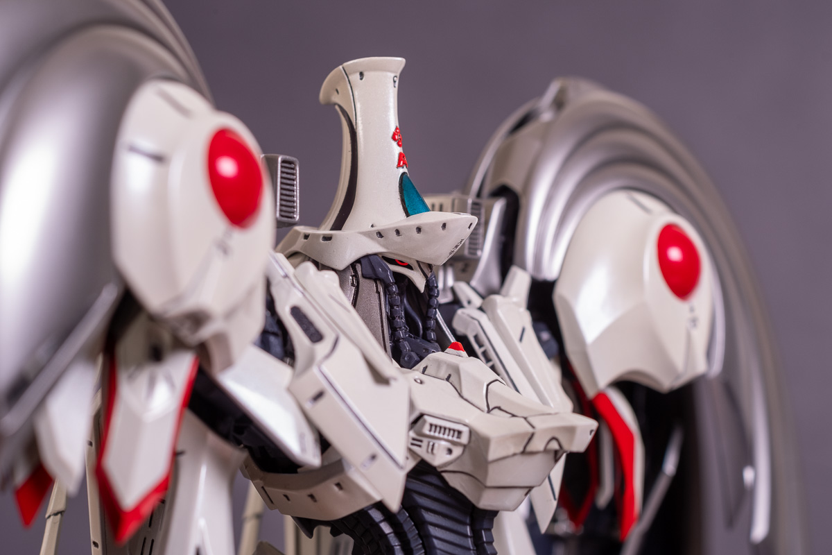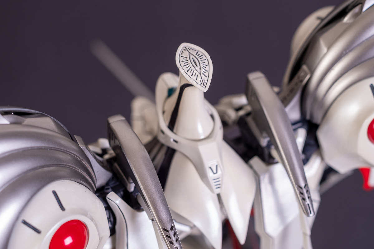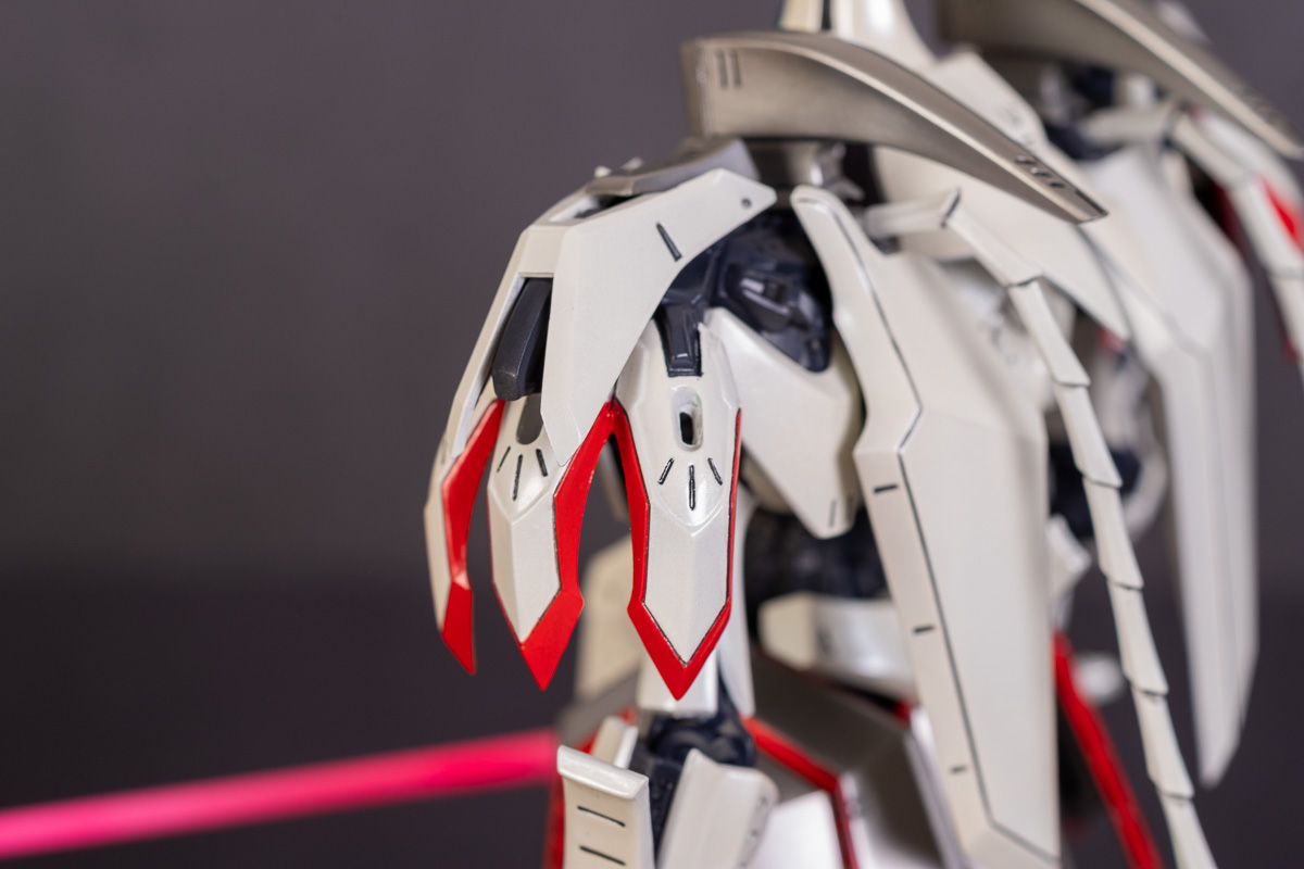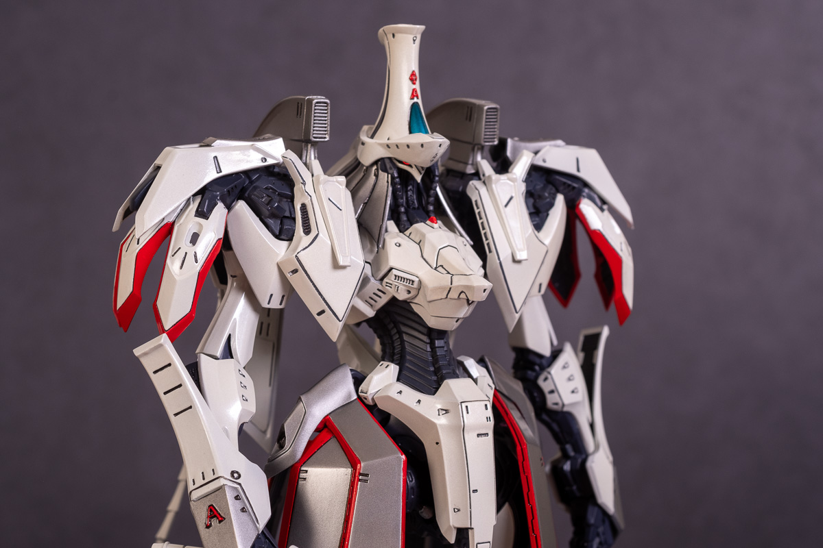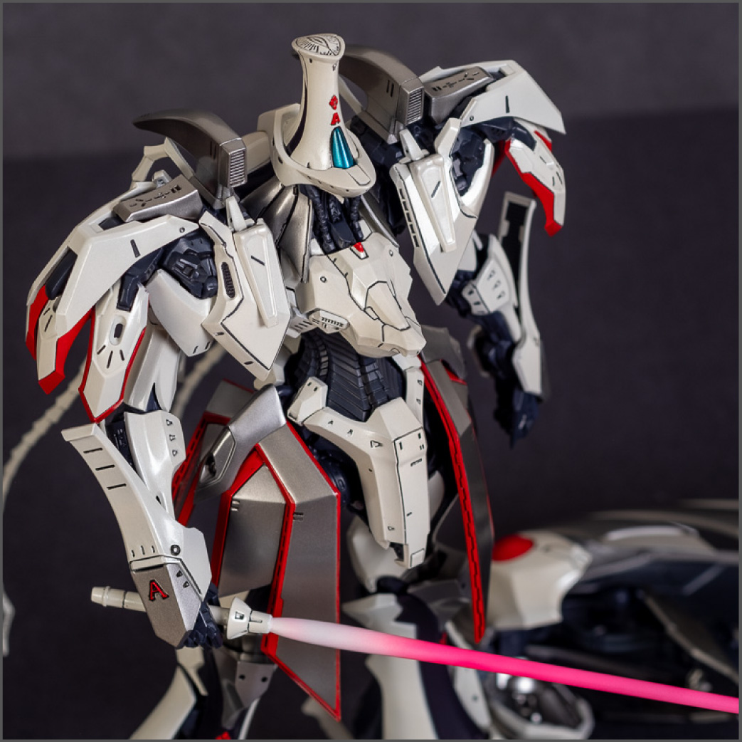 Painted with Mr Color paints mostly with the usual Vallejo for some detail bits and Gaia EX Gloss Clear for the final coating. I used a white pearl over the base color and that was causing a lot of issues. The paint would separate and crack on its own for no reason that I could figure out. One part had to be re-painted 8 times...yes, 8... because I'm an ocd perfectionist with these things.. *to a point anyway..but eventually it worked out.. after switching to a different brand..lol.