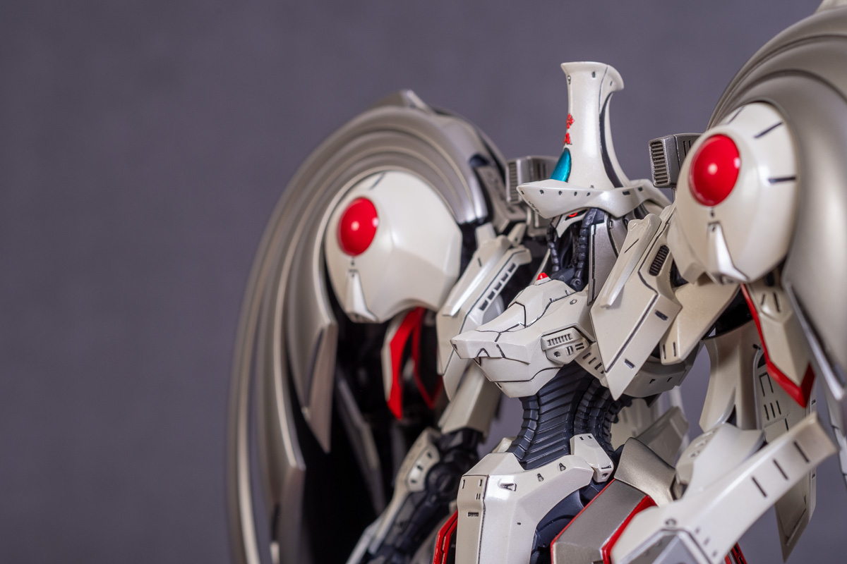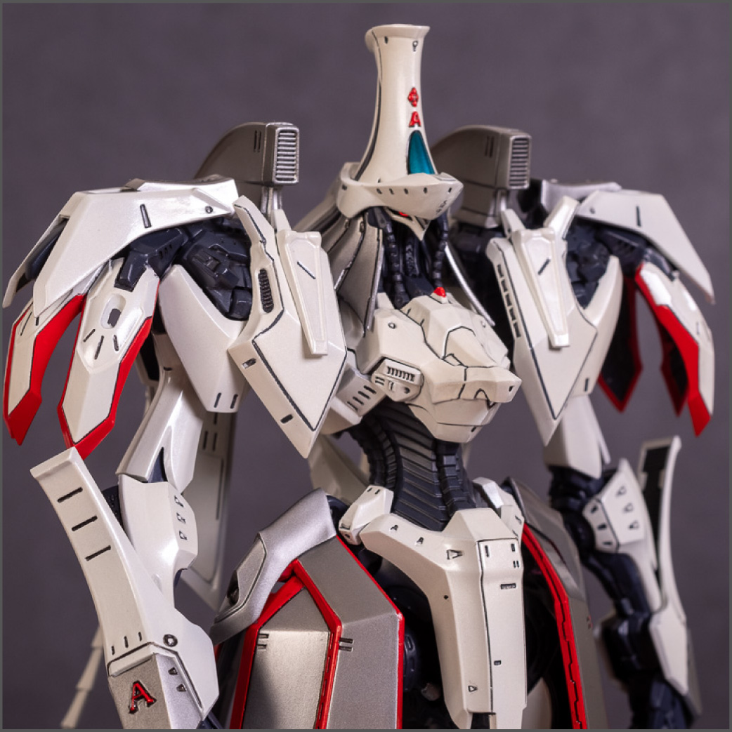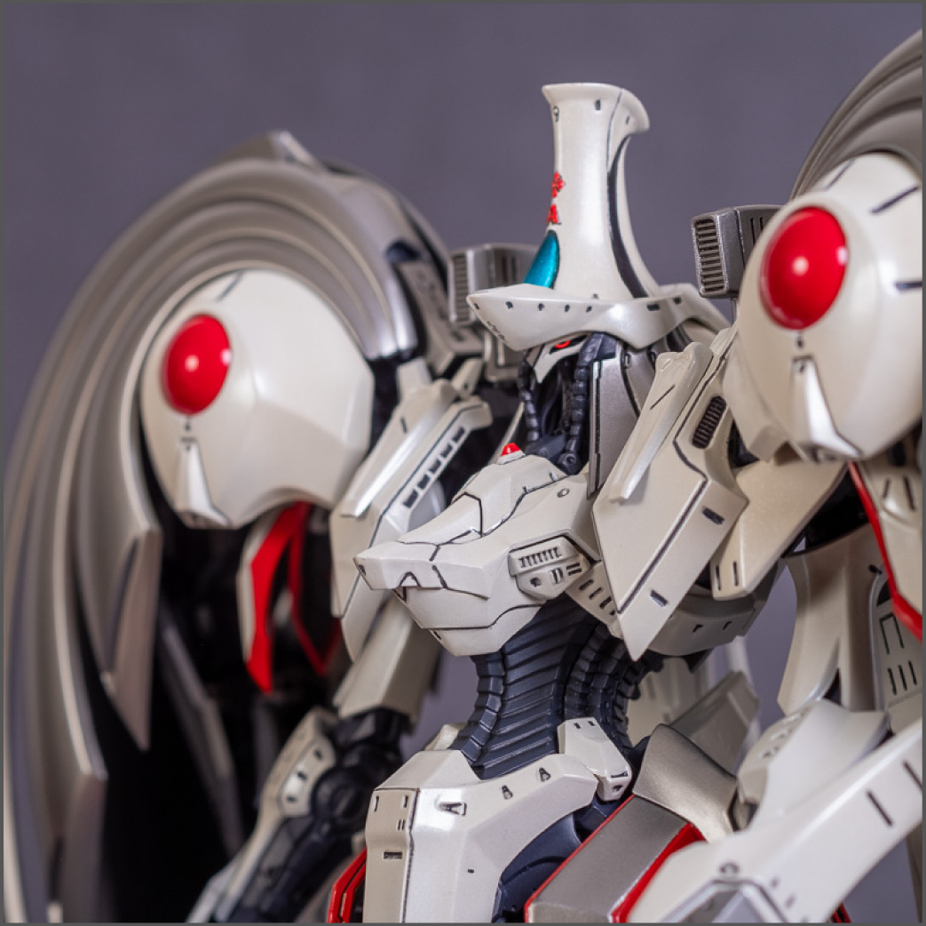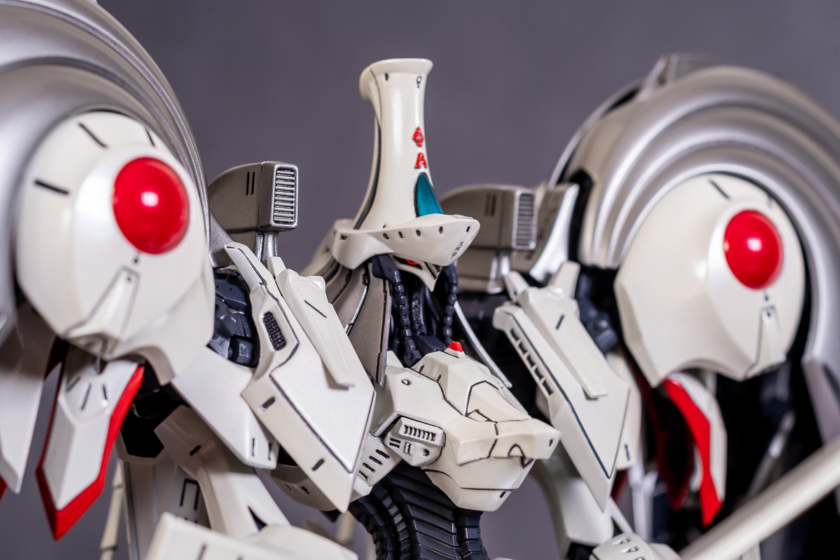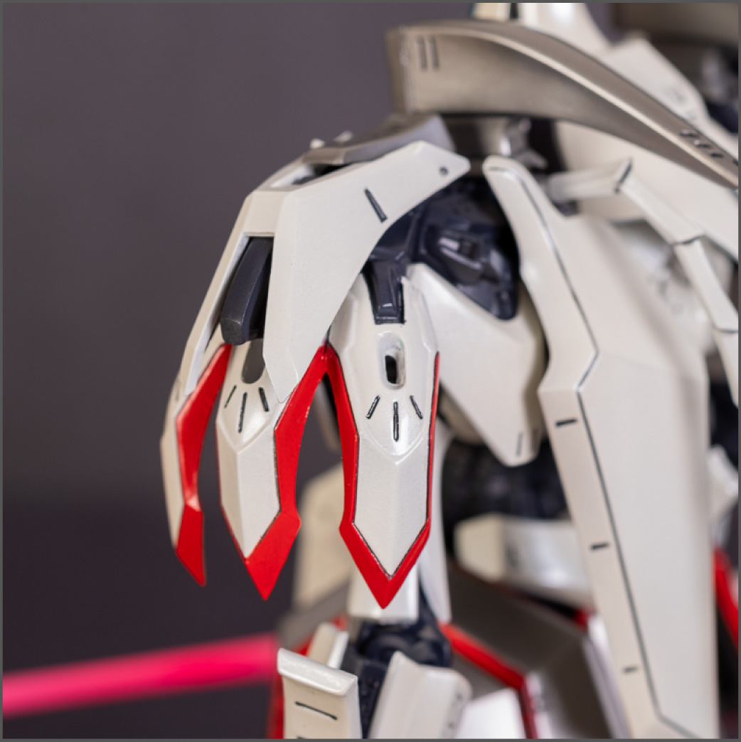 Painted with Mr Color paints mostly with the usual Vallejo for some detail bits and Gaia EX Gloss Clear for the final coating. I used a white pearl over the base color and that was causing a lot of issues. The paint would separate and crack on its own for no reason that I could figure out. One part had to be re-painted 8 times...yes, 8... because I'm an ocd perfectionist with these things.. *to a point anyway..but eventually it worked out.. after switching to a different brand..lol.