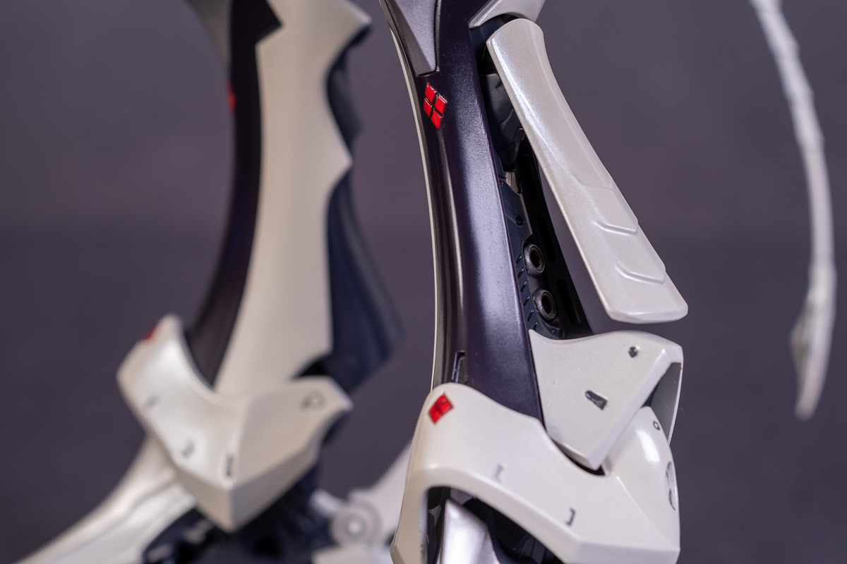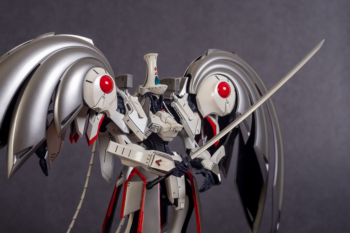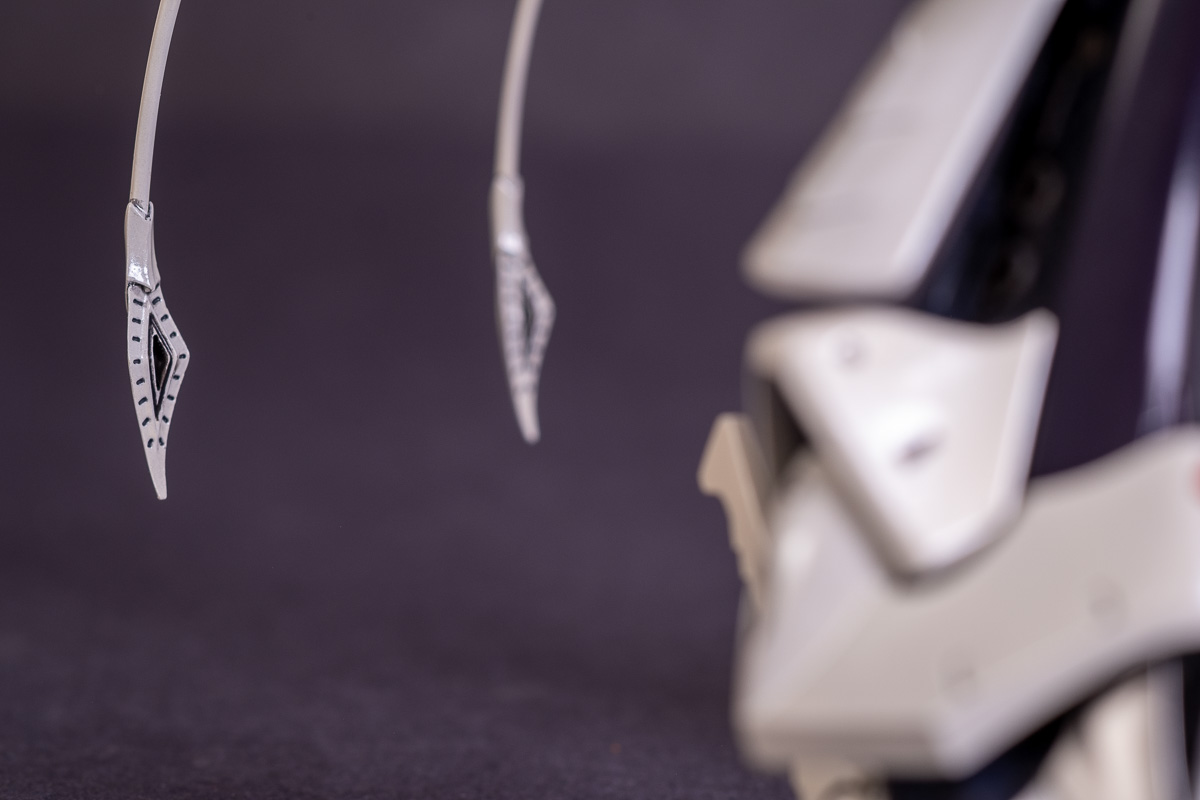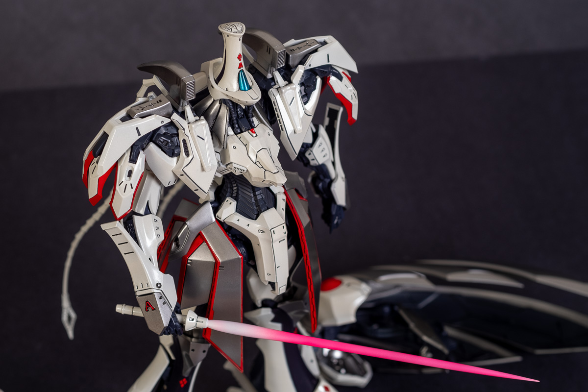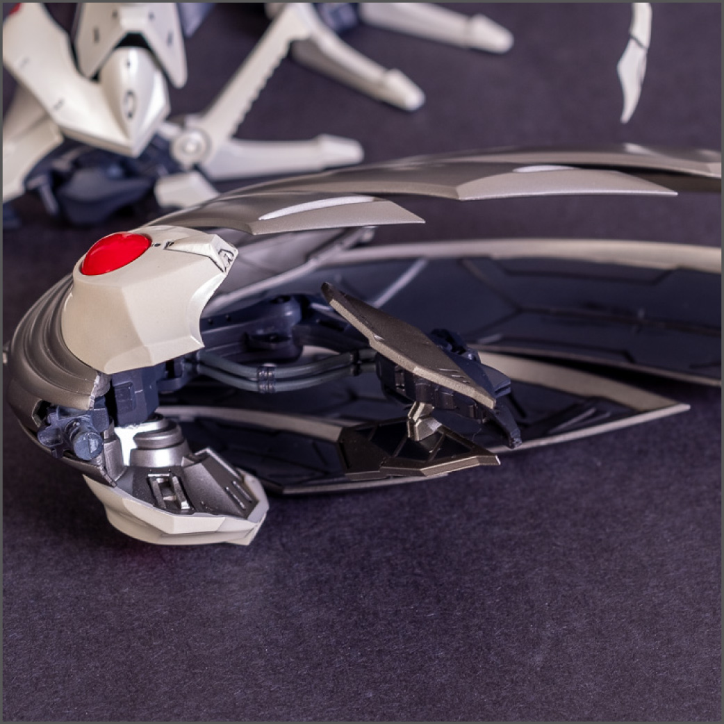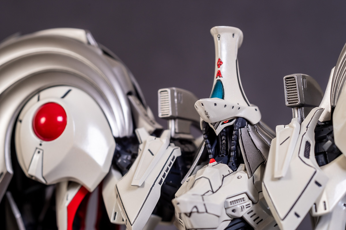 Painted with Mr Color paints mostly with the usual Vallejo for some detail bits and Gaia EX Gloss Clear for the final coating. I used a white pearl over the base color and that was causing a lot of issues. The paint would separate and crack on its own for no reason that I could figure out. One part had to be re-painted 8 times...yes, 8... because I'm an ocd perfectionist with these things.. *to a point anyway..but eventually it worked out.. after switching to a different brand..lol.