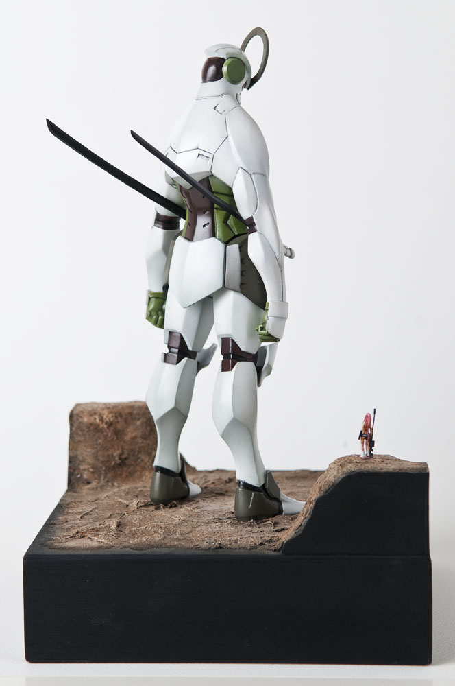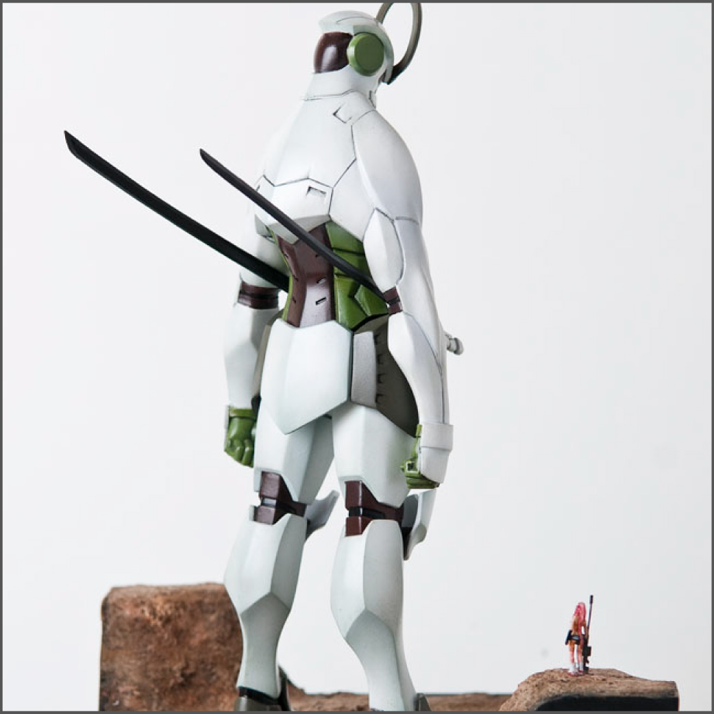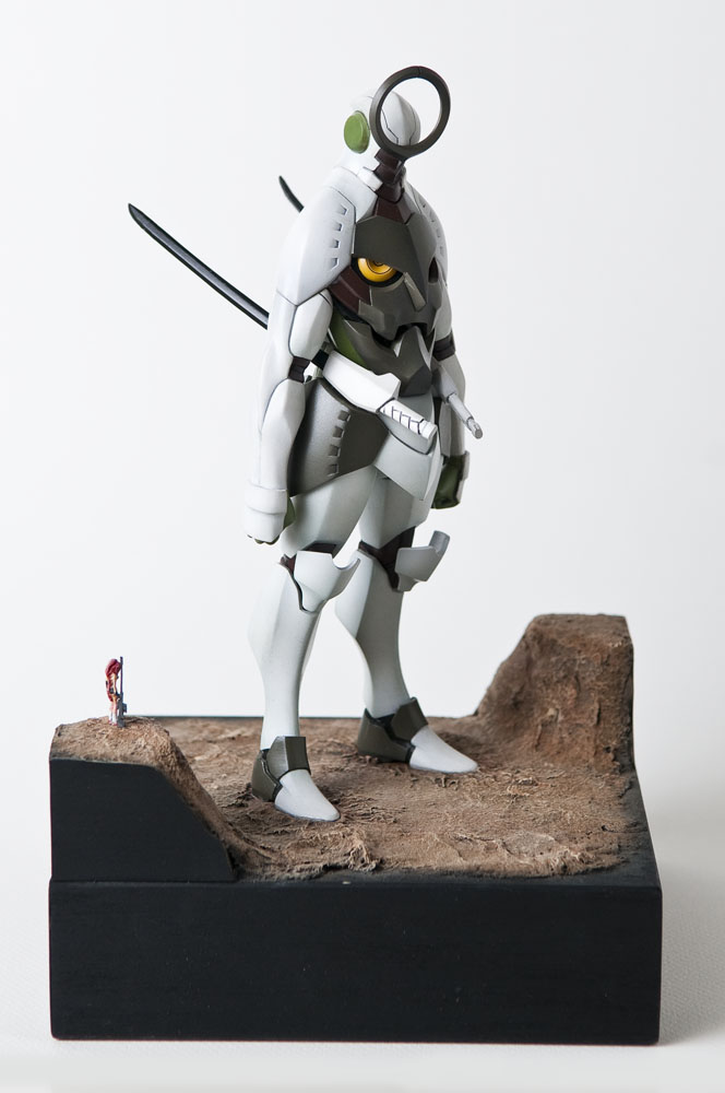 Enki is the "bad guy" mech from the anime Gurren Lagaan. I had fun with this one, although it took awhile, but mostly because of laziness. I added a little Yoko figure to add a scale reference. I think it's around 1/100 although i'm not 100% sure.