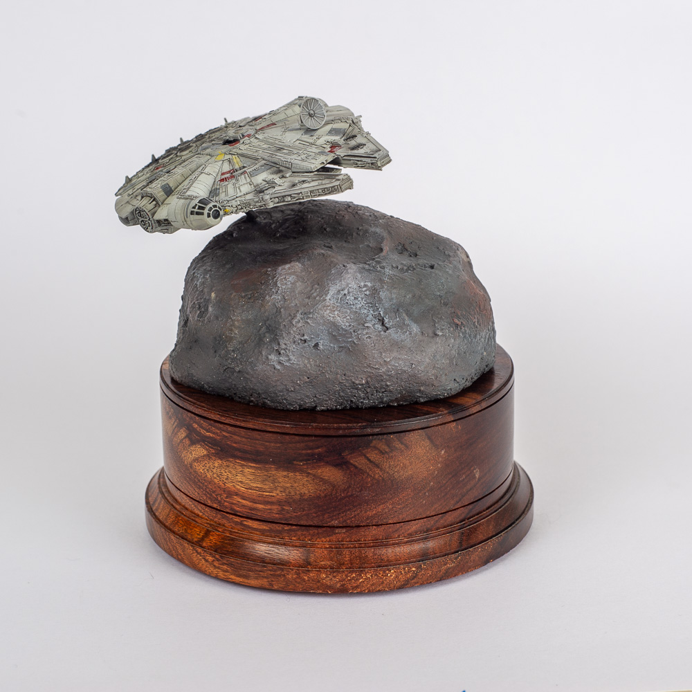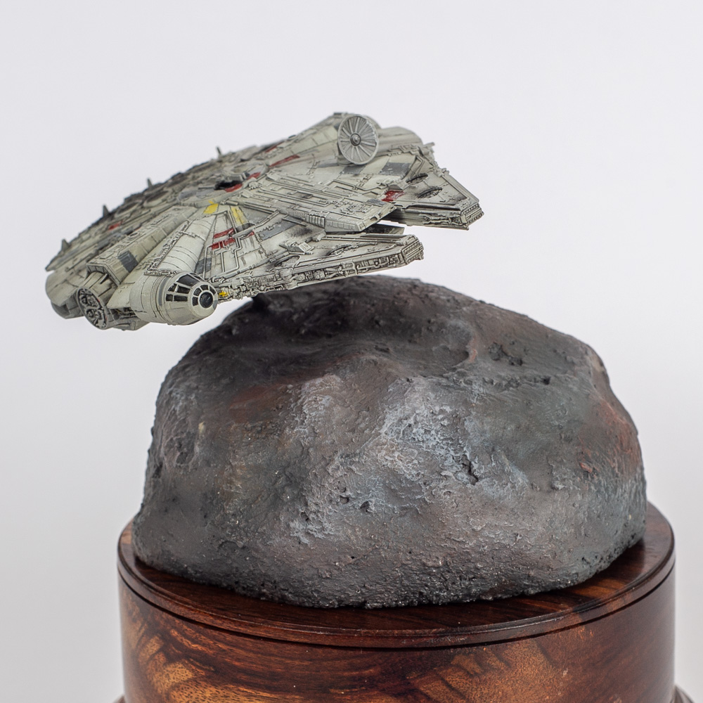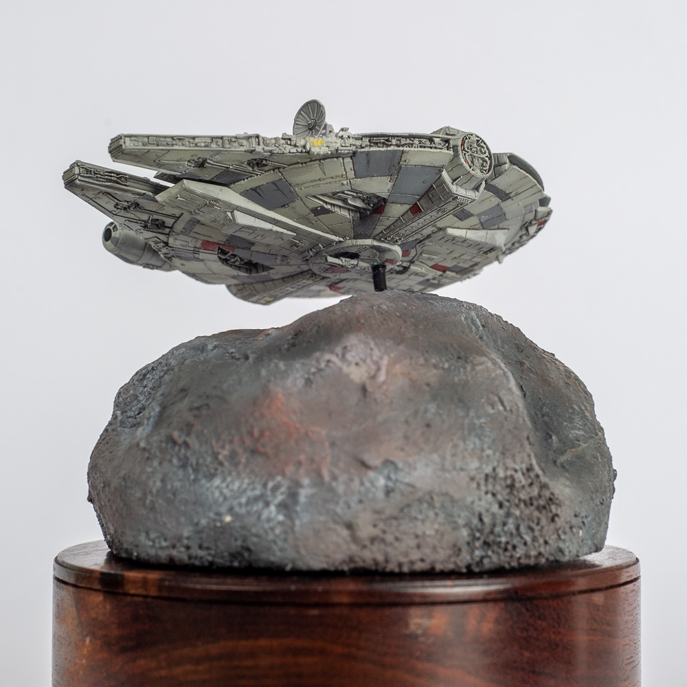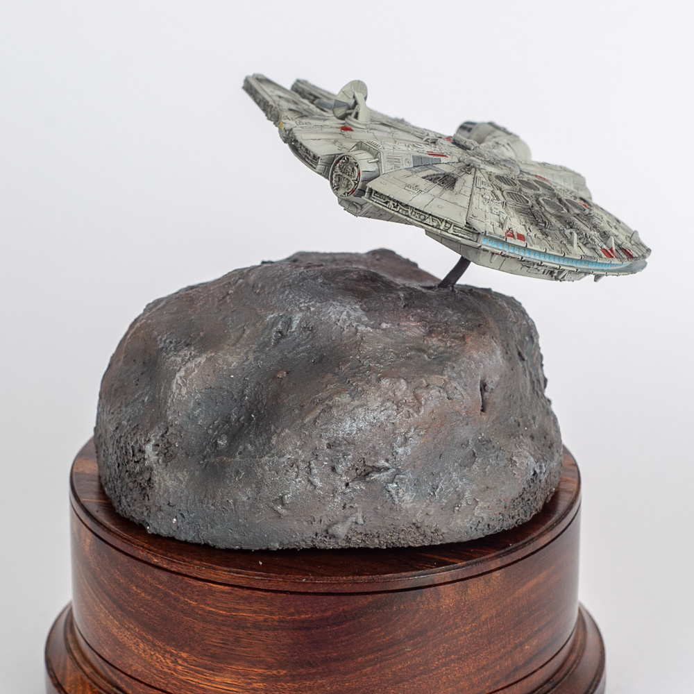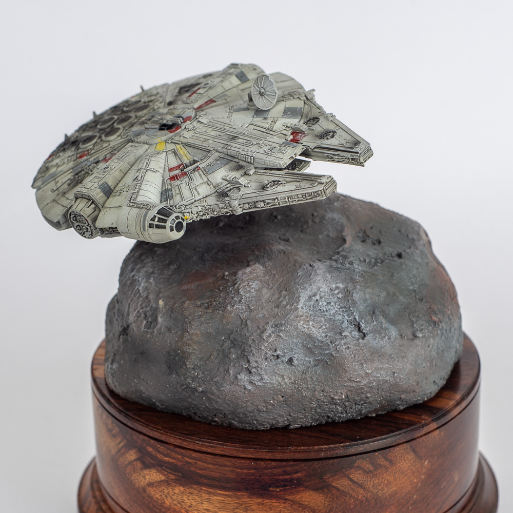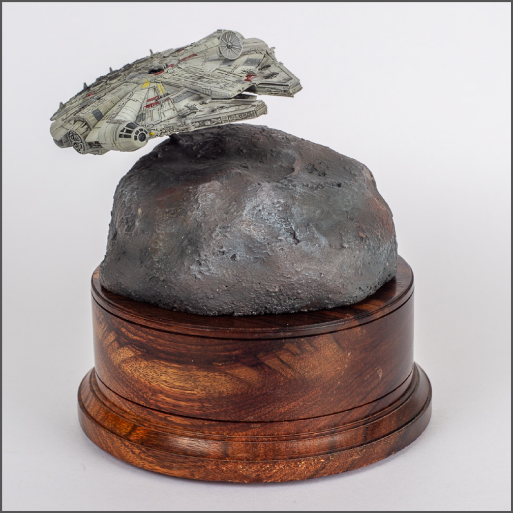 Assembly was simple, just a few pieces. It comes with some stickers for the windows and different colored panels that are thrown in the trash. Its the paintjob that makes this kit shine. Aside from thebase color, all done by hand brushing. The asteroid base was made with some styrofoam. Pretty simple, but effective. These little kits are small, but fun quick builds. |