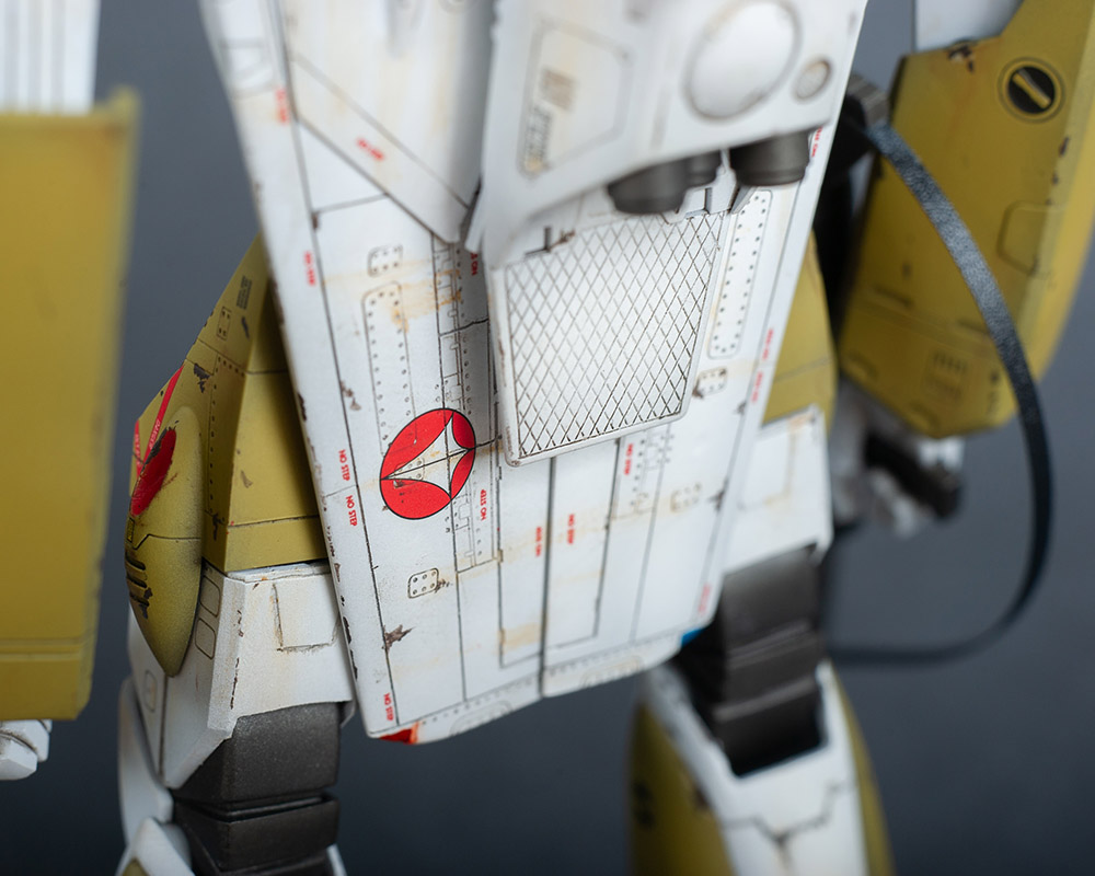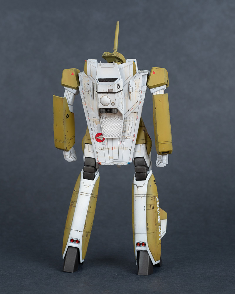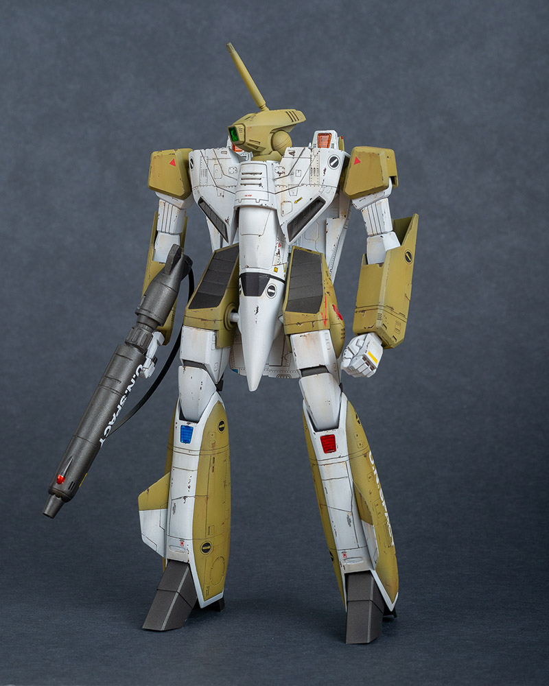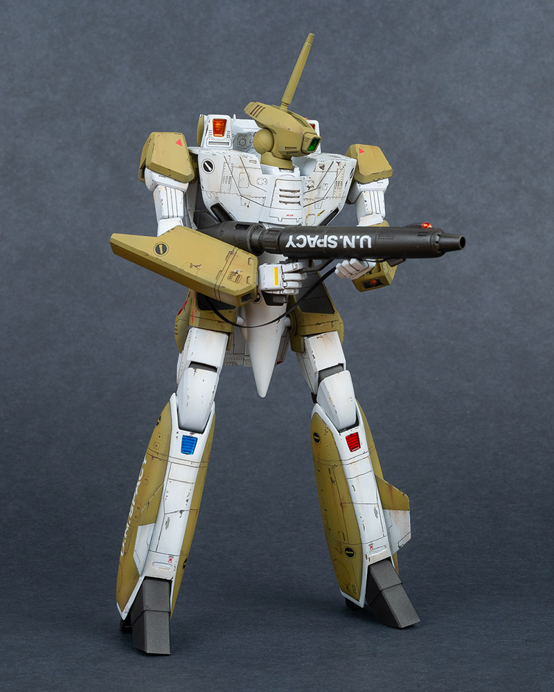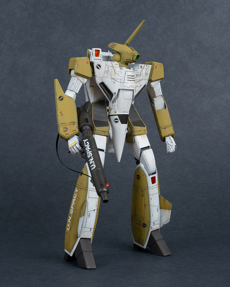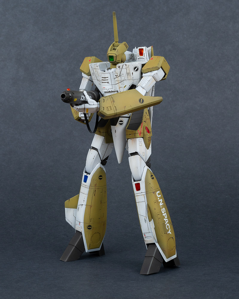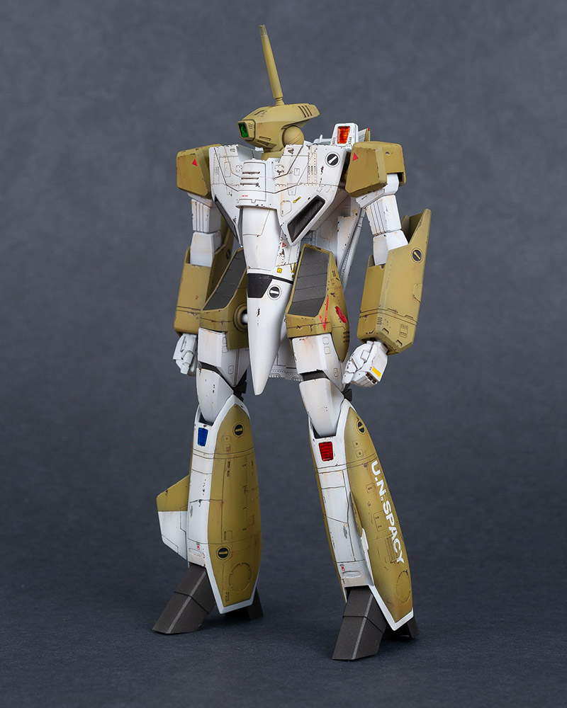 After having built Hikaru's VF-1J Battroid, then Max's VF-1A (tv version), I decided I wanted to round out the Vermillion Squadron and build Kakizaki's. So here it is. It's the same kit as the others, but just painted in his color scheme. I did some extra weathering on this one using AK weathering pencils, but other than that it was build in pretty much the same way as the other two.