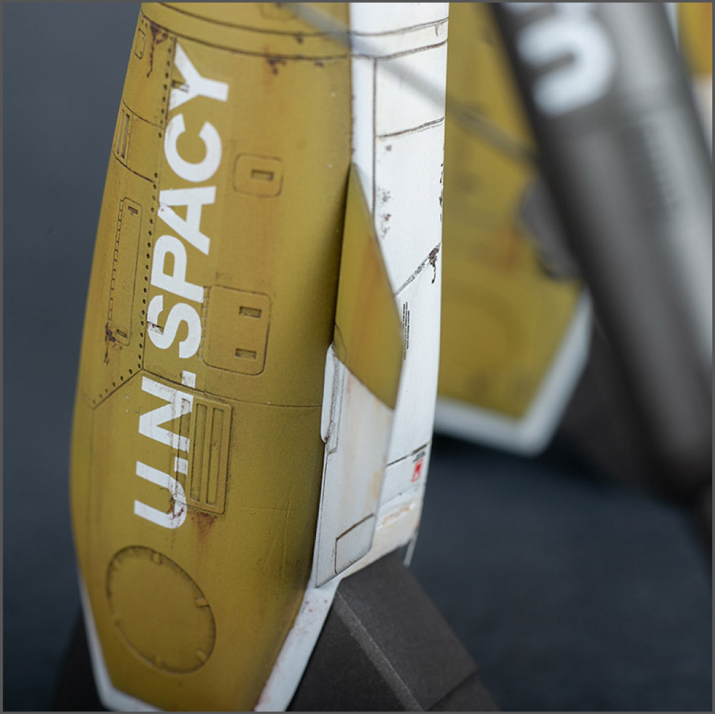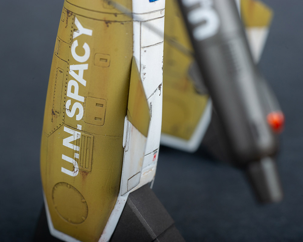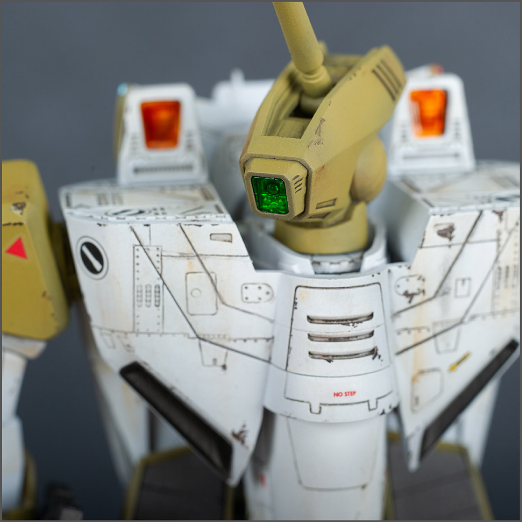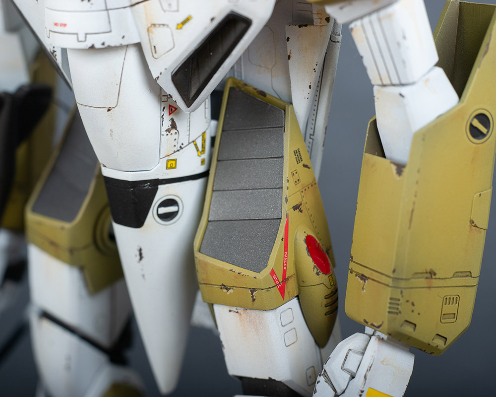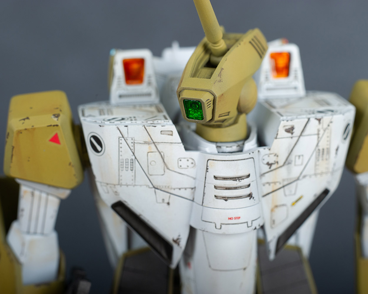 After having built Hikaru's VF-1J Battroid, then Max's VF-1A (tv version), I decided I wanted to round out the Vermillion Squadron and build Kakizaki's. So here it is. It's the same kit as the others, but just painted in his color scheme. I did some extra weathering on this one using AK weathering pencils, but other than that it was build in pretty much the same way as the other two.