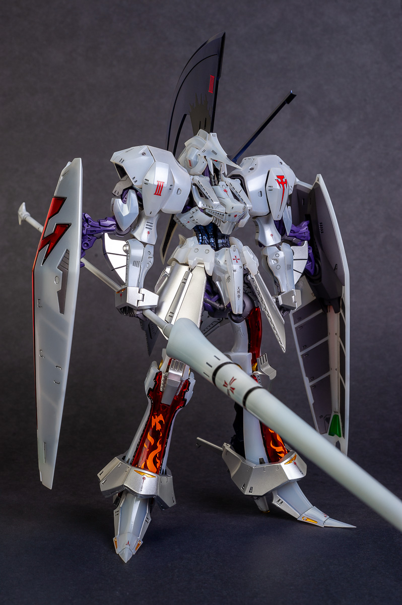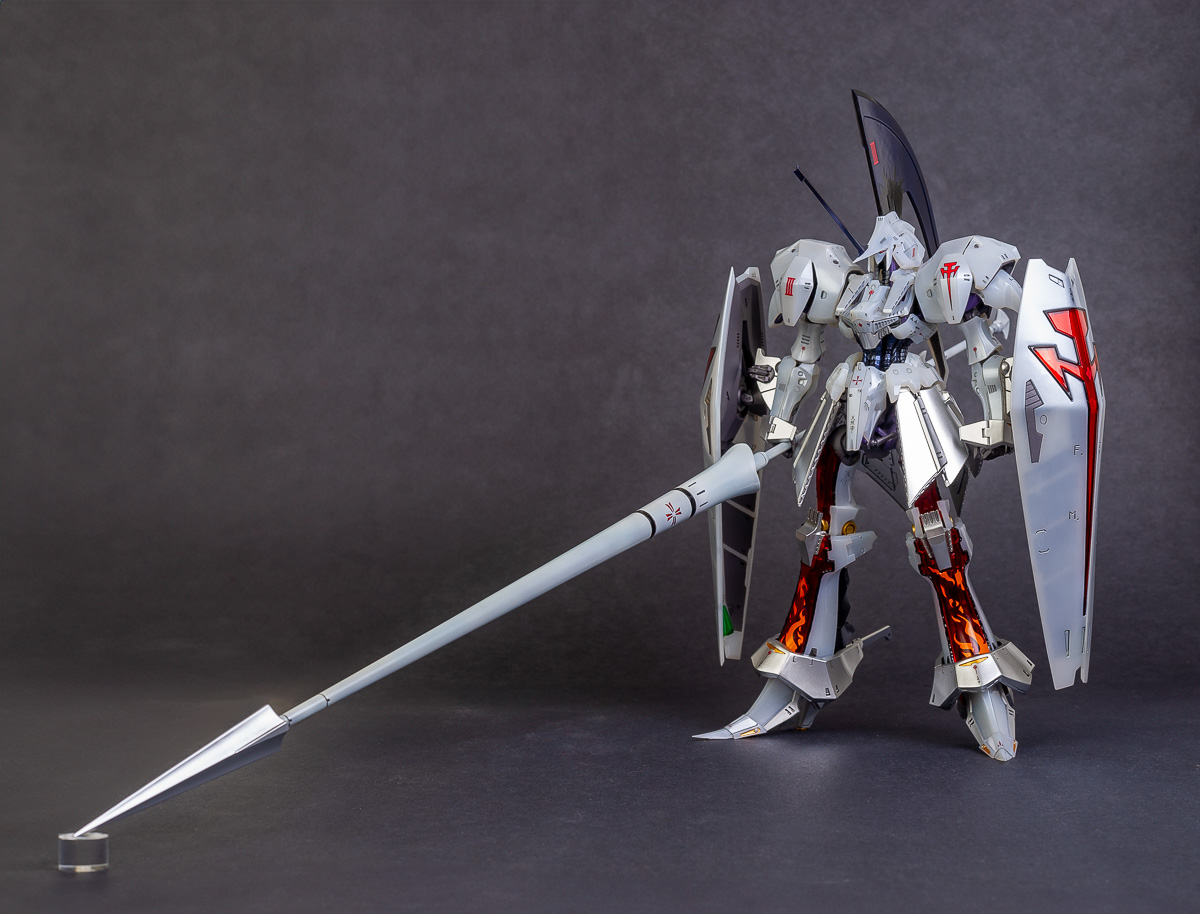 LED Mirage V3 Delta Beruun 3007 is complete. It took longer than I wanted it to because of life getting in the way, but i'm happy with the results. The LED Mirage has always been one of my favorite Mortarheadds (what the robots from Five Star Stories are called). I think maybe it's nostalgia. It was the first one I ever saw, although, it does just look cool. This spear on this thing is 2ft long, which I guess is about 70cm to you guys using the wrong measuring system (jk), so I haven't figured out where to put it yet..lol