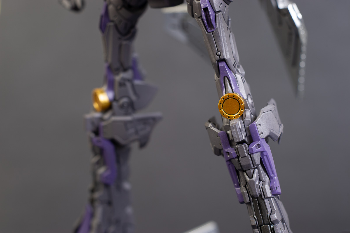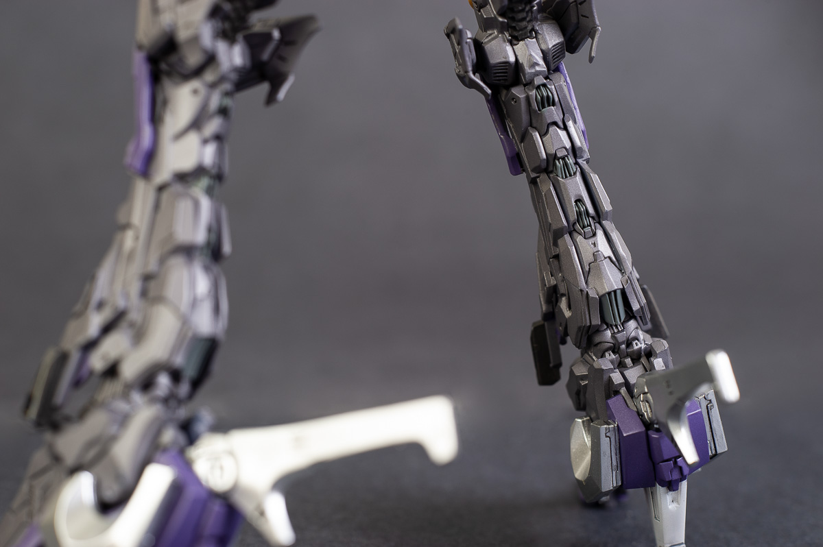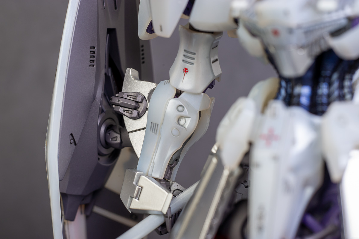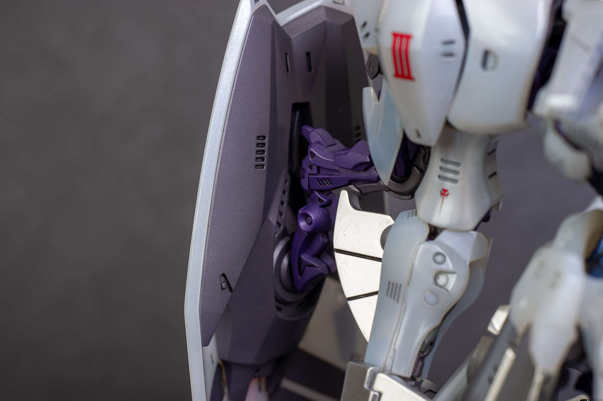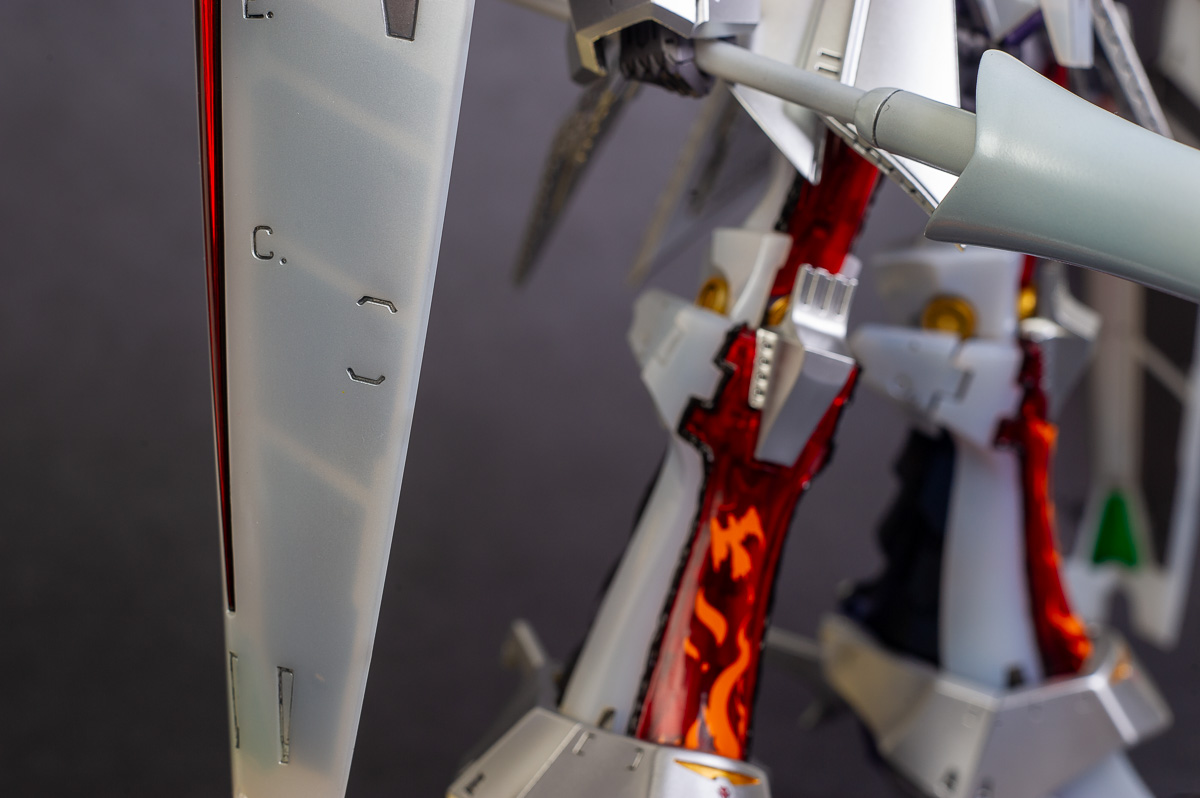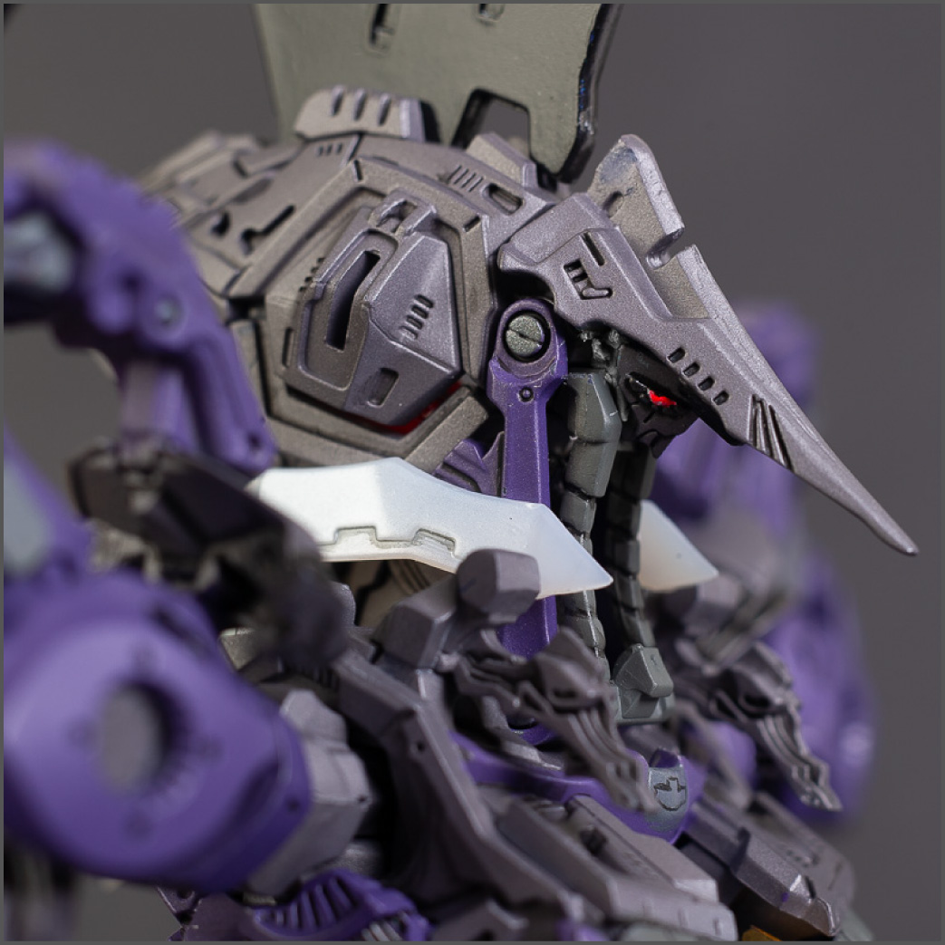 The main painting was as follows: White armor: Mr Color Lascivus Clear White, with Mr Crystal Color Moonstone Pearl on top. Blue/Black waist and "mohawk": Gloss black with Mr Crystal Color Sapphire Blue over it. The frame is just straight up Mr Color Purple and the grey is a mix of some stuff.. it's in the manual, but I forgot what it was. Silver: Tamiya lacquer Sparkling Silver Gold: Gaianotes Star Bright Gold and... some detail bits with Vallejo I took pics of the frame too, so check them out. They're permanently covered with the armor now, so stuff like the Fatima cockpit in the head are sealed forever, but at least I have the photos.