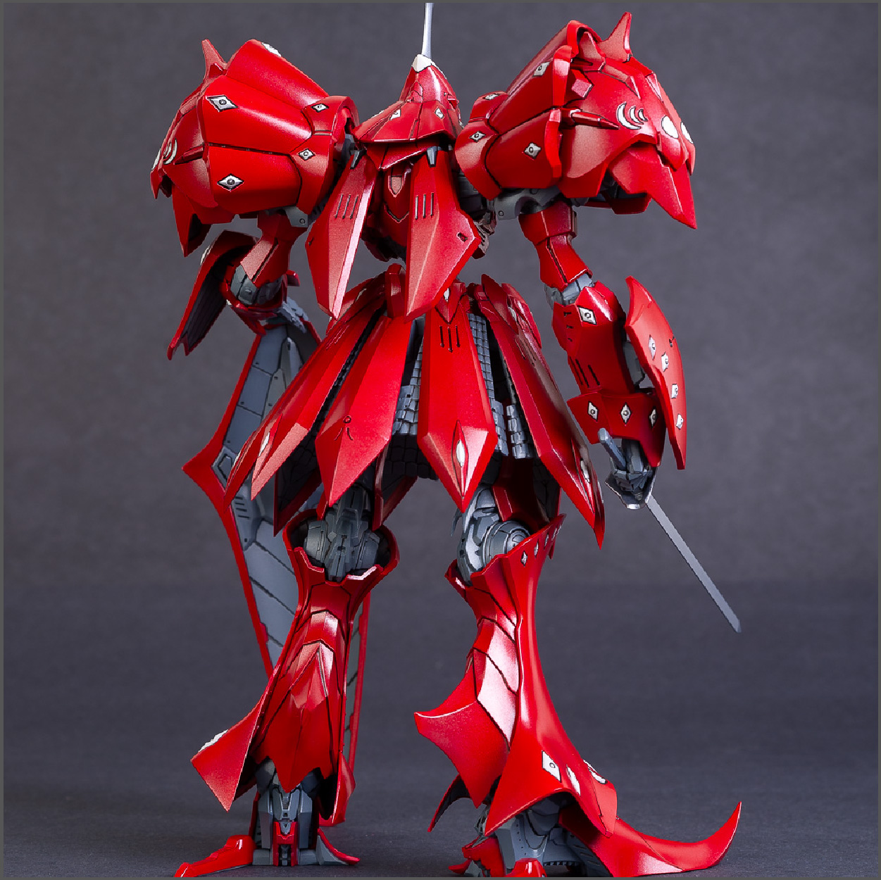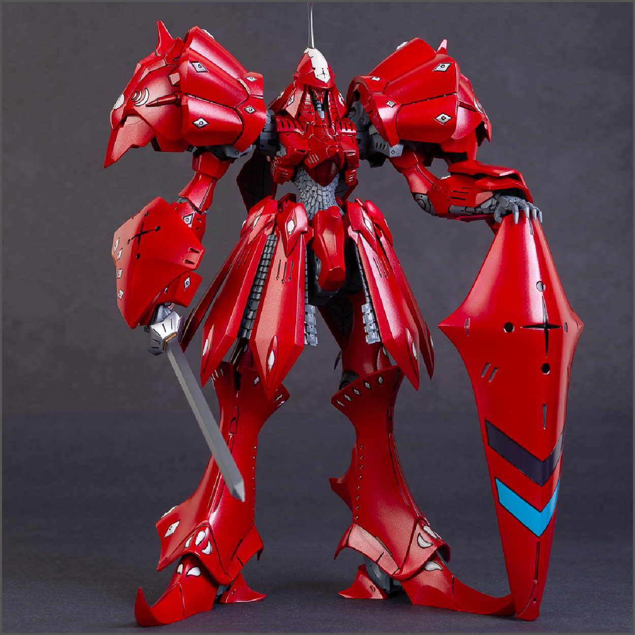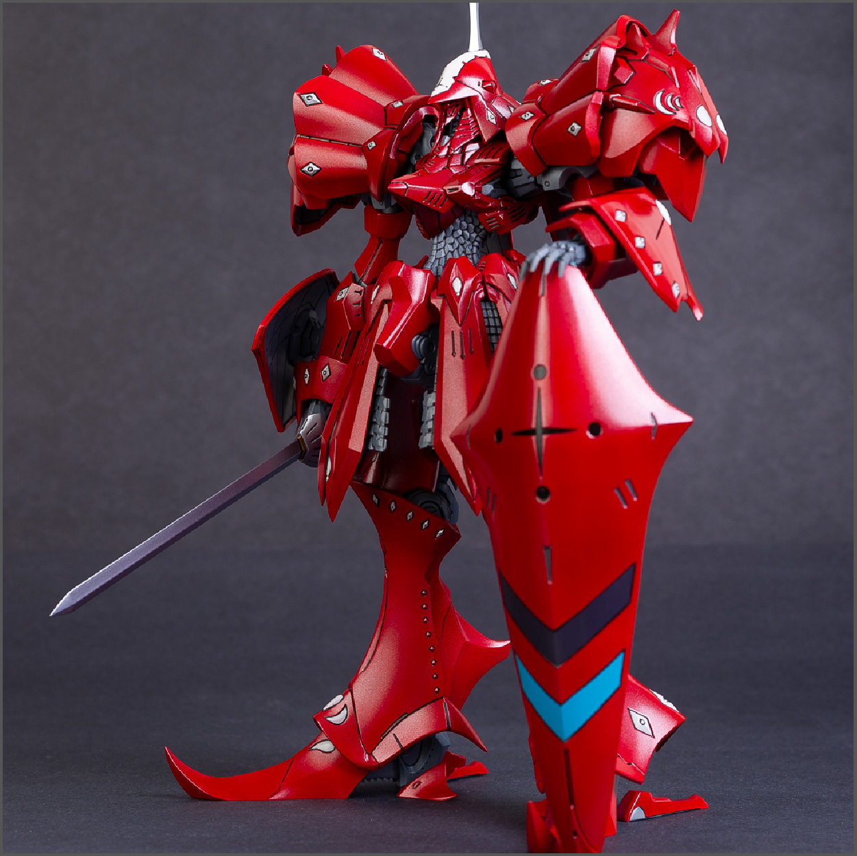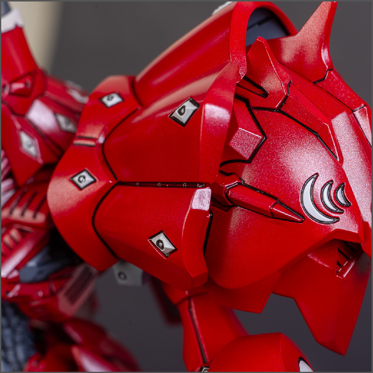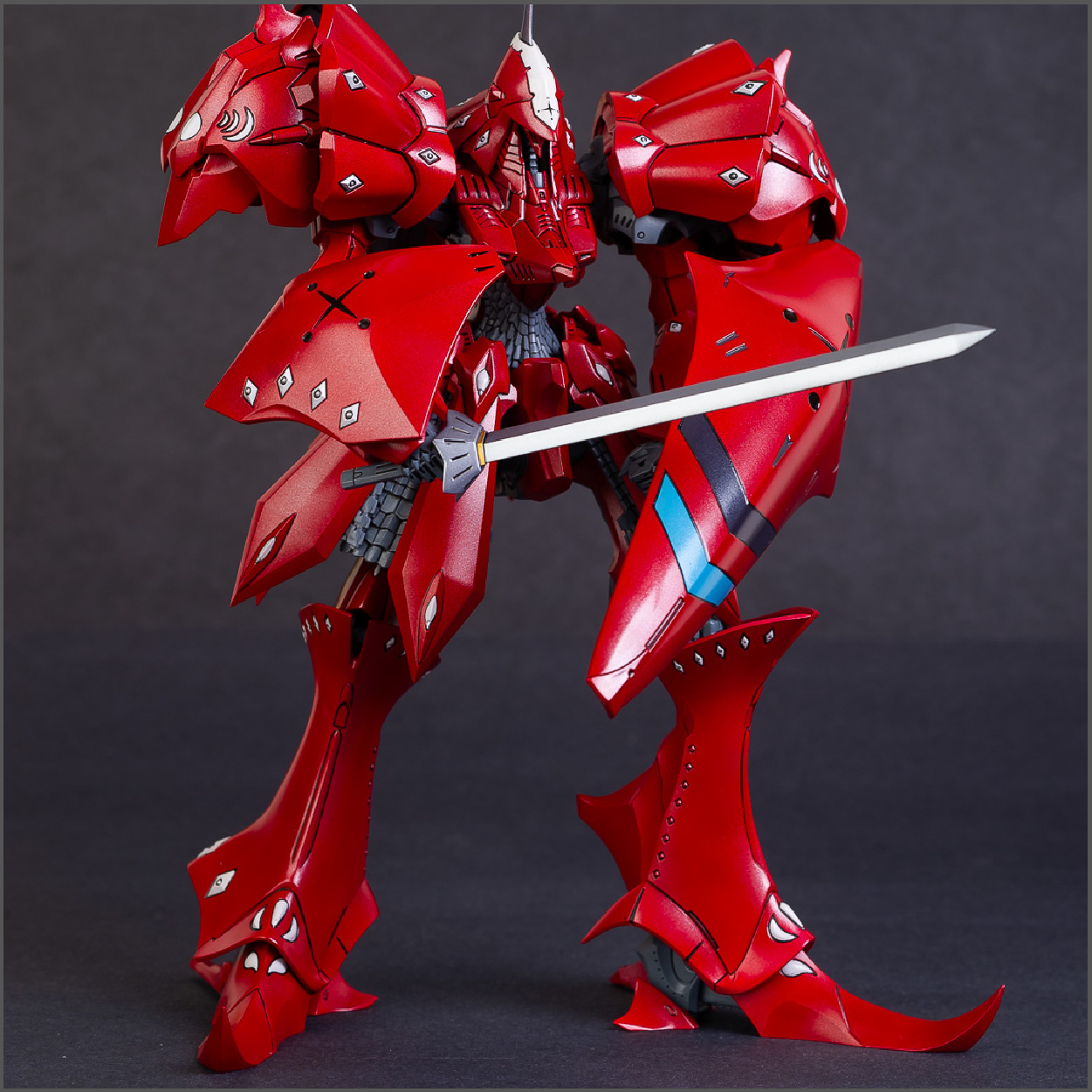 I've finished another Mortarheadd. This time the 1/100 IMS Sirene F kit released early 2025. It...looks...AWESOME! This red version is the Red Group leader of the Fillmore Empire's Kneu Syltiss Knights. Headdliner (pilot) = Brauma Ik Fatima (co-pilot) = Obriside I'm super happy with the end result, although I did have a little bit of user error trouble and had to repaint some of it a couple times. (dust and stuff). The build itself was pretty straightforward. It has screws in the joints that allows for better posing compared to past IMS kits so that's pretty cool. A few seamlines to fill, but not too bad. The red is a mix from the manual with a white pearl clear over it. I was a little skeptical of white pearl over red at first, but it add the beautiful color pop to the bulky design and it actually looks pretty badass. note: there's a pearl coat over it so for some reason it looks less glossy than it actually is :(