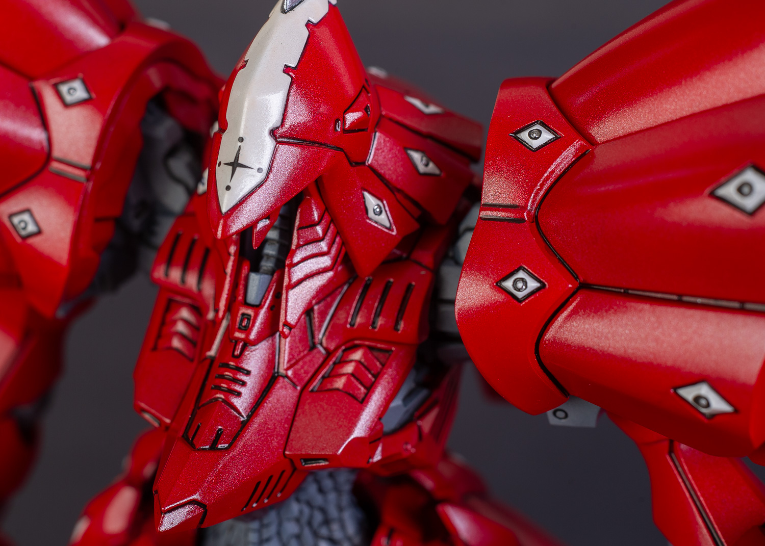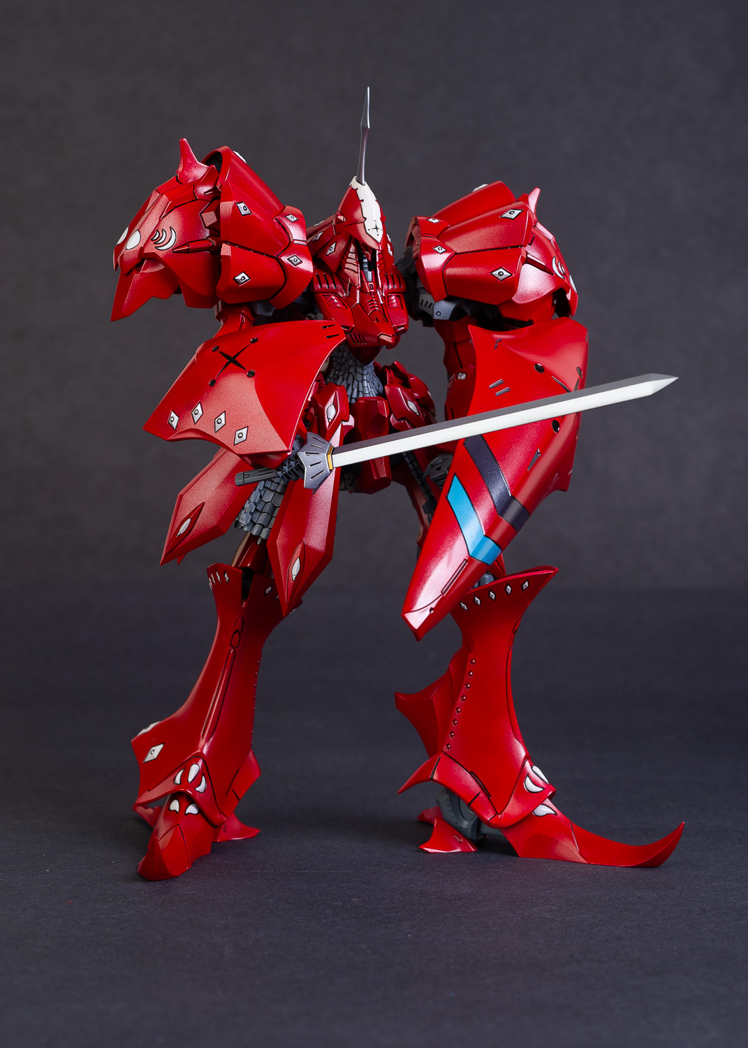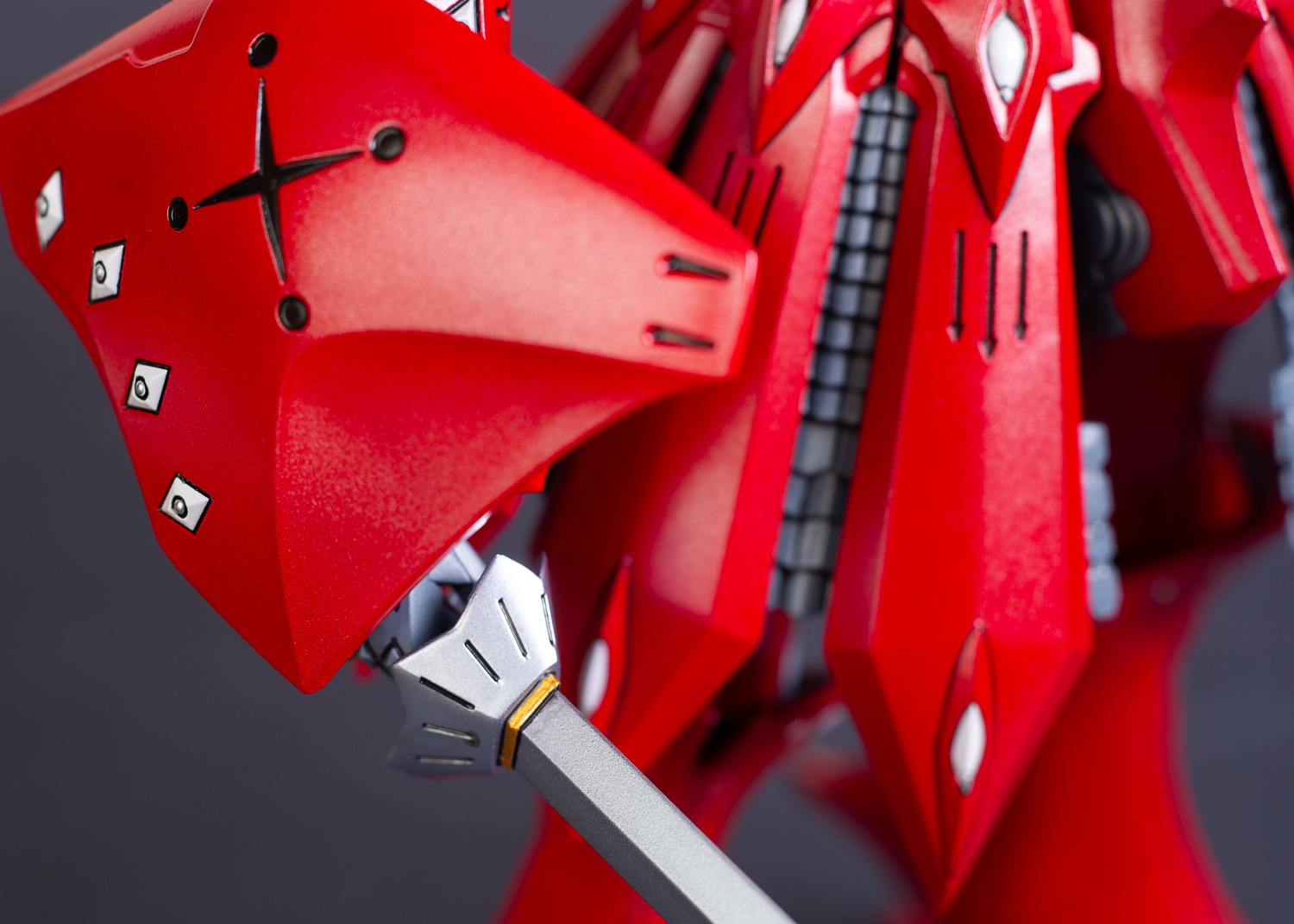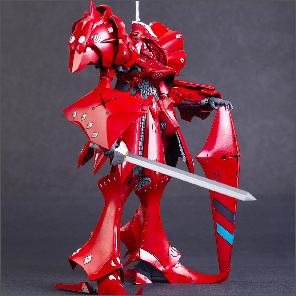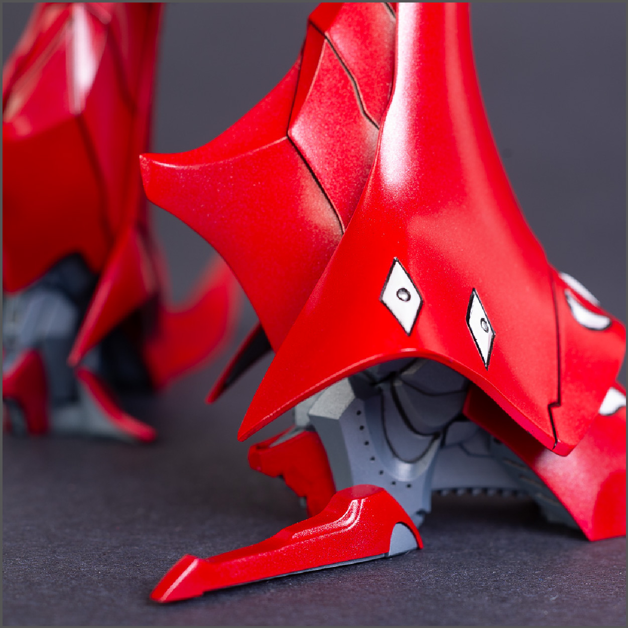 I've finished another Mortarheadd. This time the 1/100 IMS Sirene F kit released early 2025. It...looks...AWESOME! This red version is the Red Group leader of the Fillmore Empire's Kneu Syltiss Knights. Headdliner (pilot) = Brauma Ik Fatima (co-pilot) = Obriside I'm super happy with the end result, although I did have a little bit of user error trouble and had to repaint some of it a couple times. (dust and stuff). The build itself was pretty straightforward. It has screws in the joints that allows for better posing compared to past IMS kits so that's pretty cool. A few seamlines to fill, but not too bad. The red is a mix from the manual with a white pearl clear over it. I was a little skeptical of white pearl over red at first, but it add the beautiful color pop to the bulky design and it actually looks pretty badass. note: there's a pearl coat over it so for some reason it looks less glossy than it actually is :(