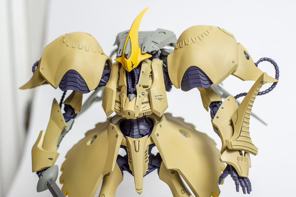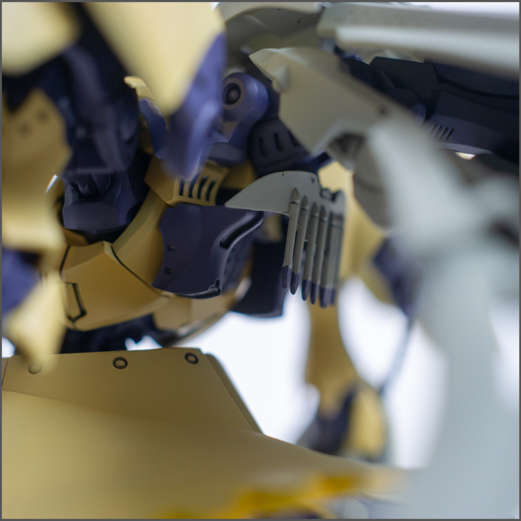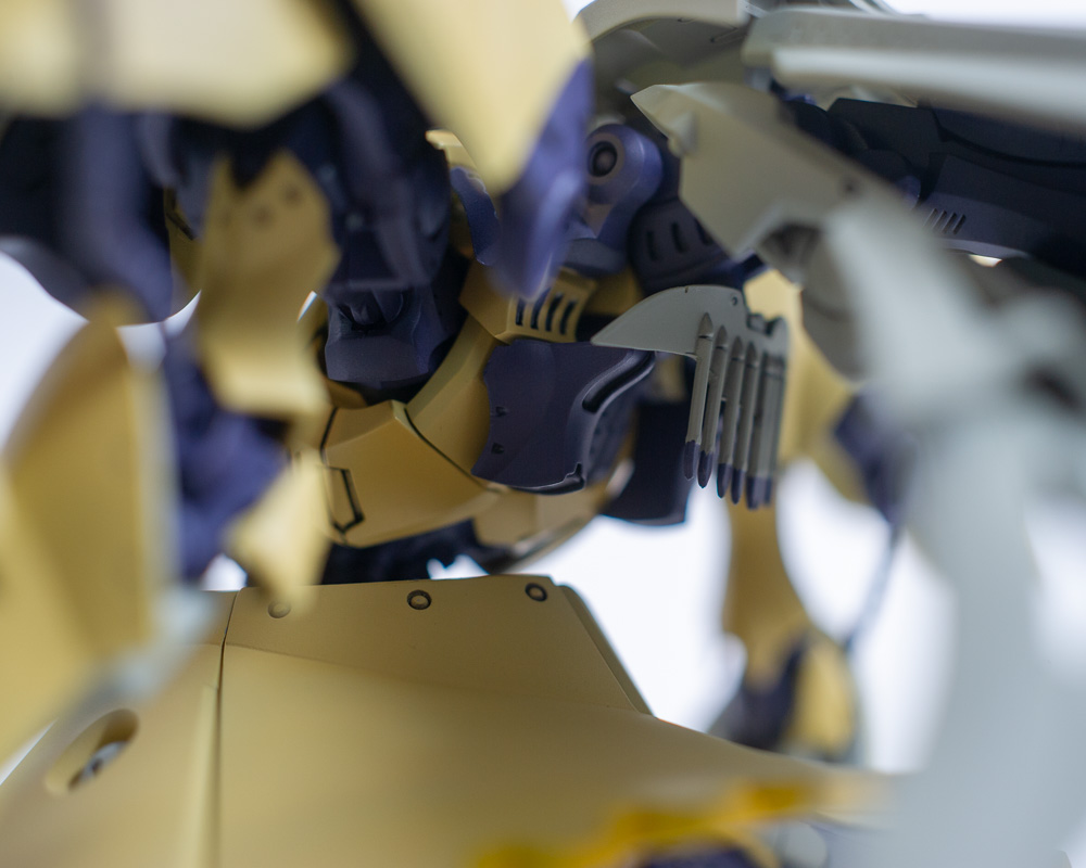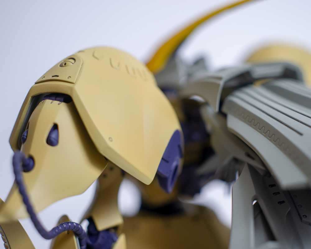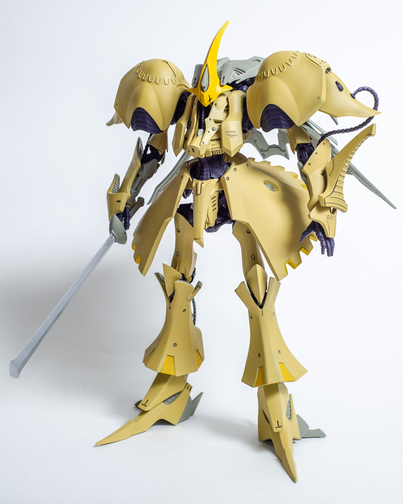 Another commission build for Volks' U.S. office. This is a newer kit than the KOG and it shows. It was a lot easier to build. It didn't hurt that it's a matte finish, which is easier than a gloss finish since you don't have to worry as much about dust and cat hairs getting stuck in it. Only one decal on the whole thing too. The huge backpack makes it a little back heavy so you have to pose it just right to make it stand properly, but it looks really cool when finished.