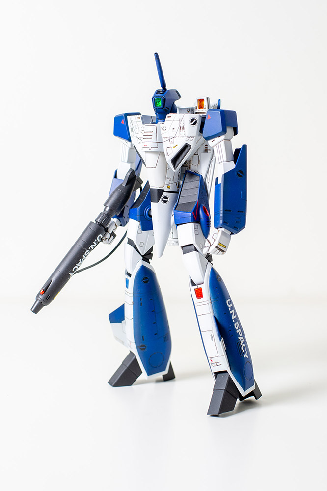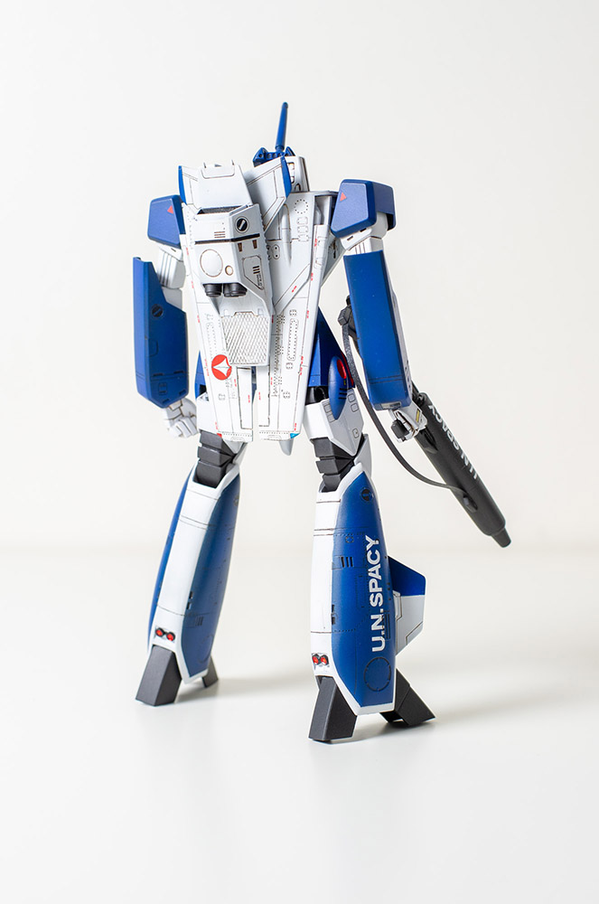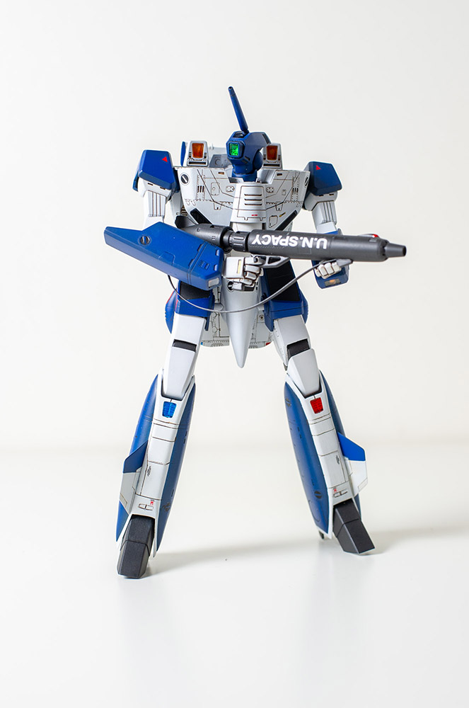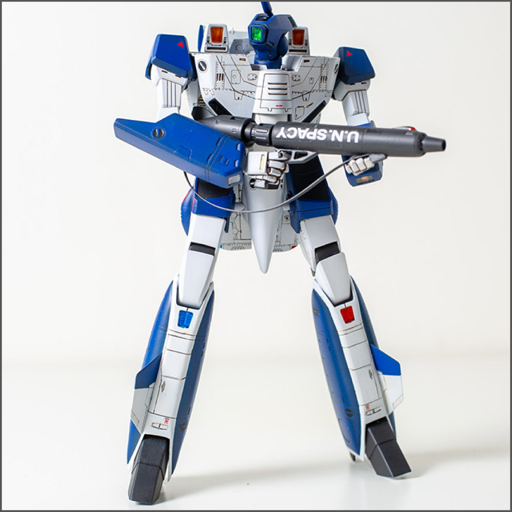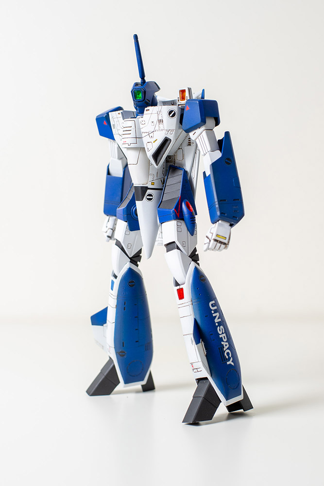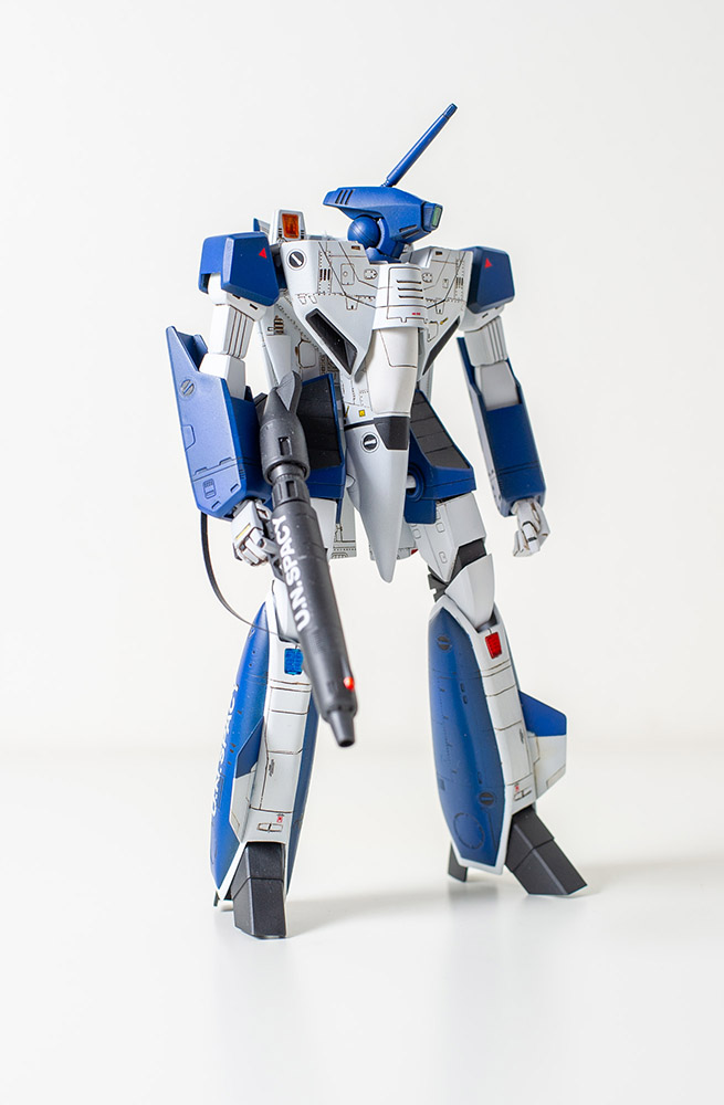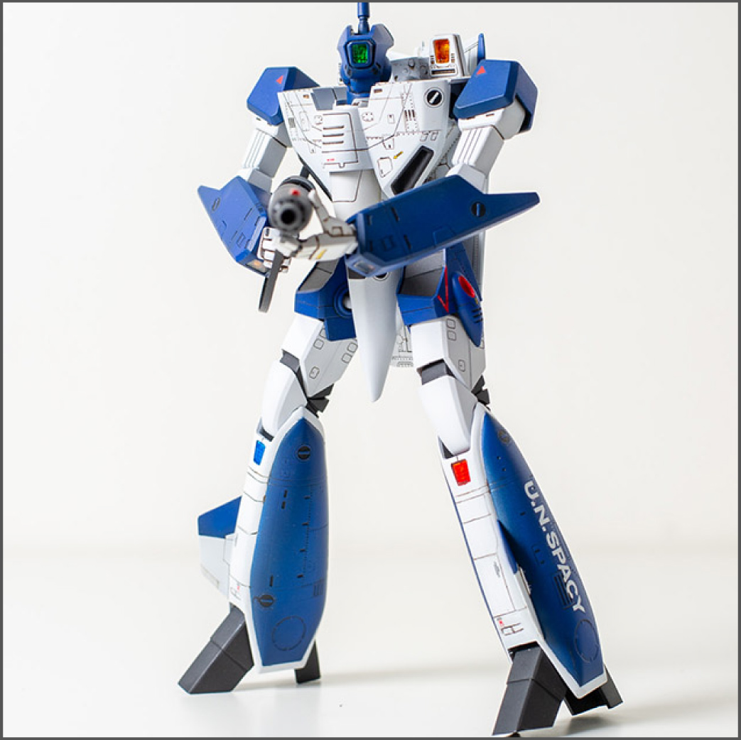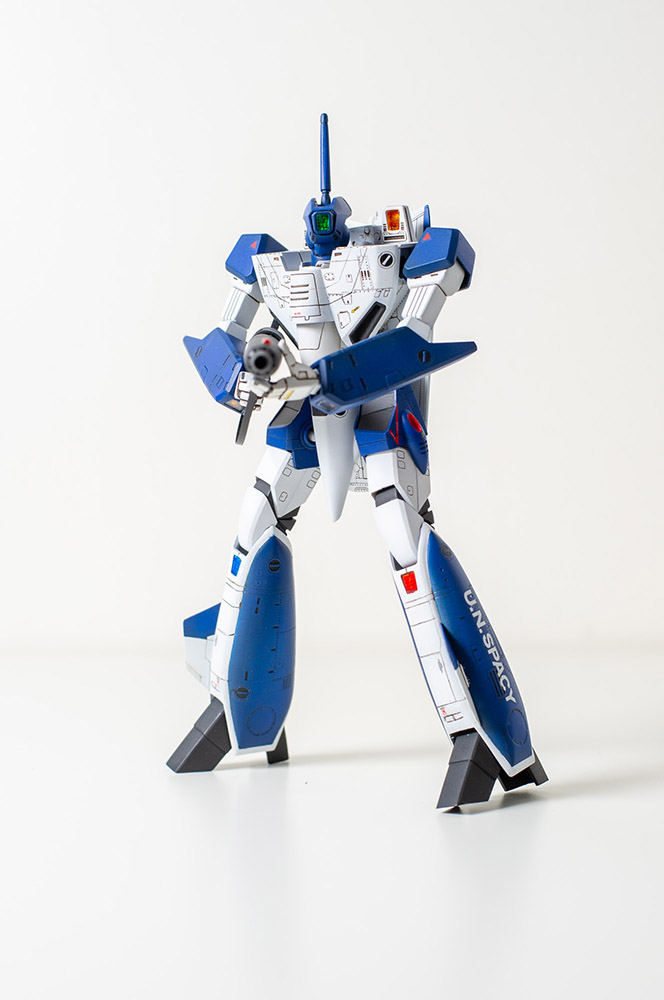 It's the basic Hasegawa Battroid. I didn't do anything special with it other than the color. If you've ever built one, then you know that there are a lot of seam lines and mold sink-marks to fill, so I wouldn't say it's a beginner kit, but it is a lot of fun. I used Mr Color paints, custom blue mix. Tamiya panel wash. That's it. I'm really happy with the result and hope you enjoy looking at it. I plan to also build Kakizaki's Battroid to round out the Vermillion squad (RIP Kakizaki)