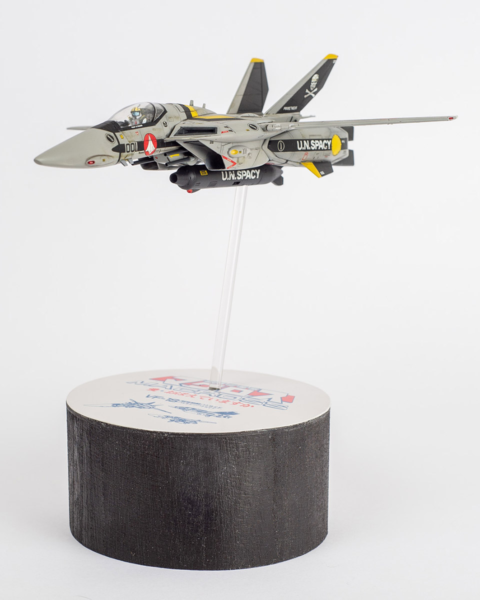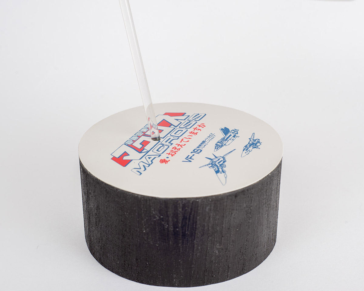 I'm pretty happy with the way it turned out, although it's not perfect. It's pretty much an airplane model in this form, and I haven't built many aircraft models after all, so it was probably a learning experience as well. I've also never built an aircraft model in flight, so I had to figure that out too. I used a standard acrylic rod and drilled a hole in the gun pod, reinforced from the inside with some epoxy putty. I wanted to do something special for the base, so I found some old lineart and added it to the movie version logo, created with Adobe Illustrator. I think it worked pretty well. |