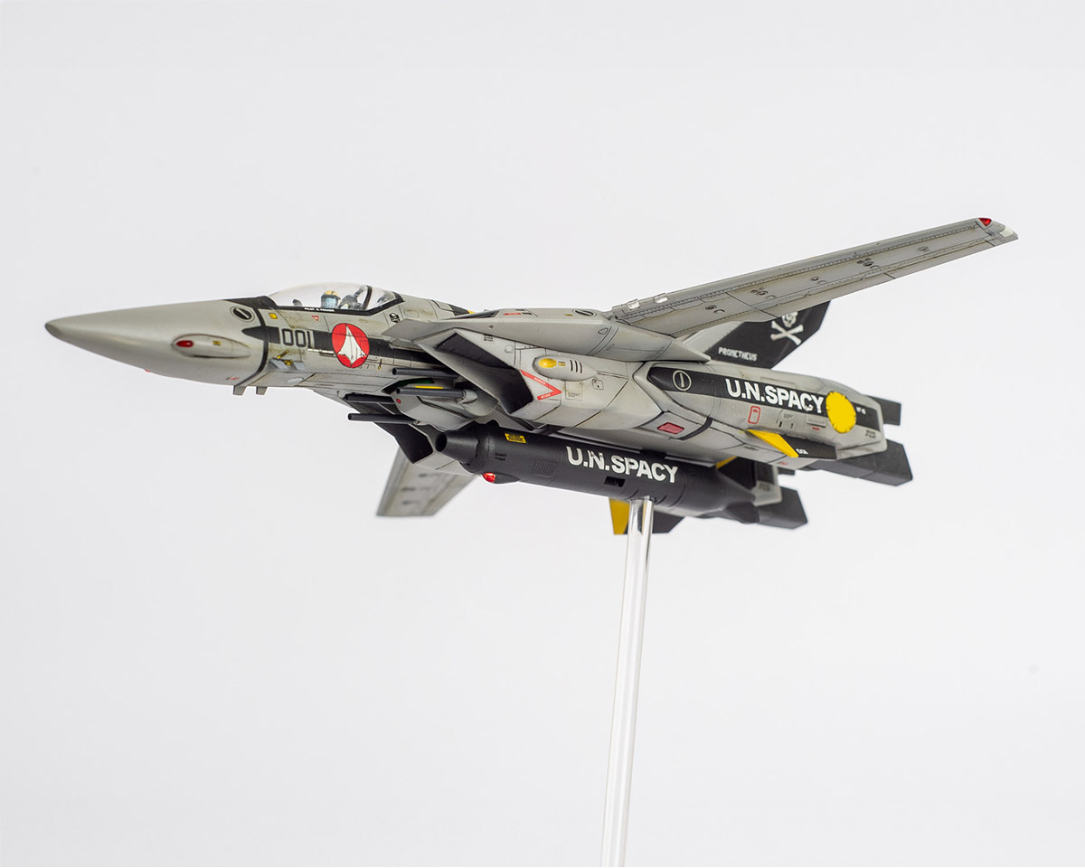 My second Macross kit...that i've finished in modern times. Technically it's probably my 4th or 5th.. I built a few Macross models when I was a kid, when I only knew it as Robotech, but those were destroyed long ago. In more recent times, I built this same kit as Max's VF-1A version, but my cat destroyed it... Back to today.